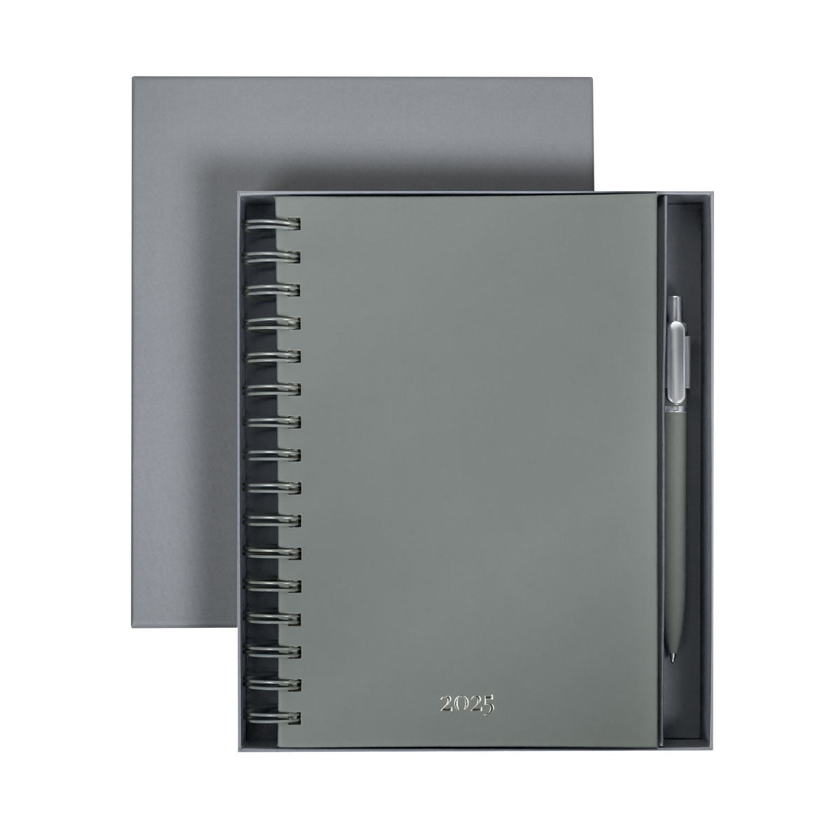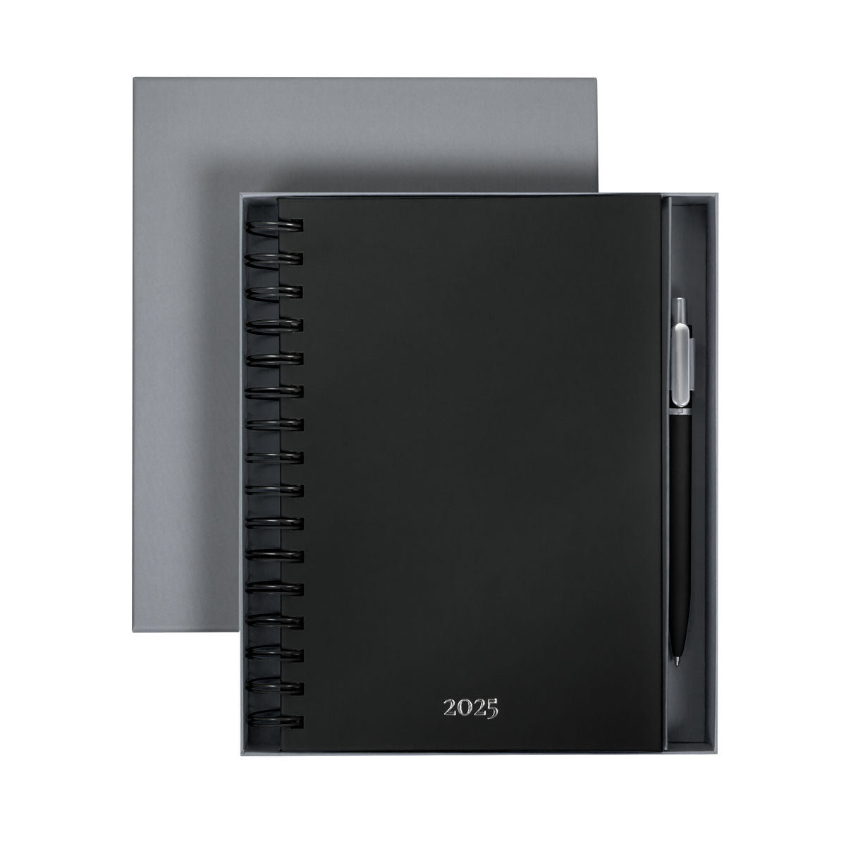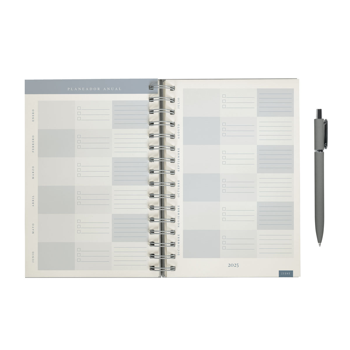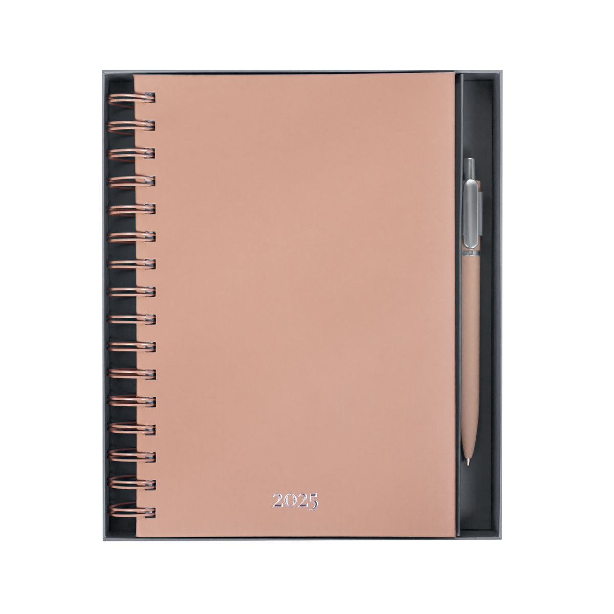 AGENDA DIARIA CON 174 HOJAS. CONTIENE DATOS PERSONALES, CALENDARIOS 2024-2025-2026, PLANEADOR 2025, SEGUIMIENTO DE NUEVOS HABITOS Y DIAS FESTIVOS. INCLUYE BOLIGRAFO METALICO Y CAJA INDIVIDUAL TIPO REGALO.