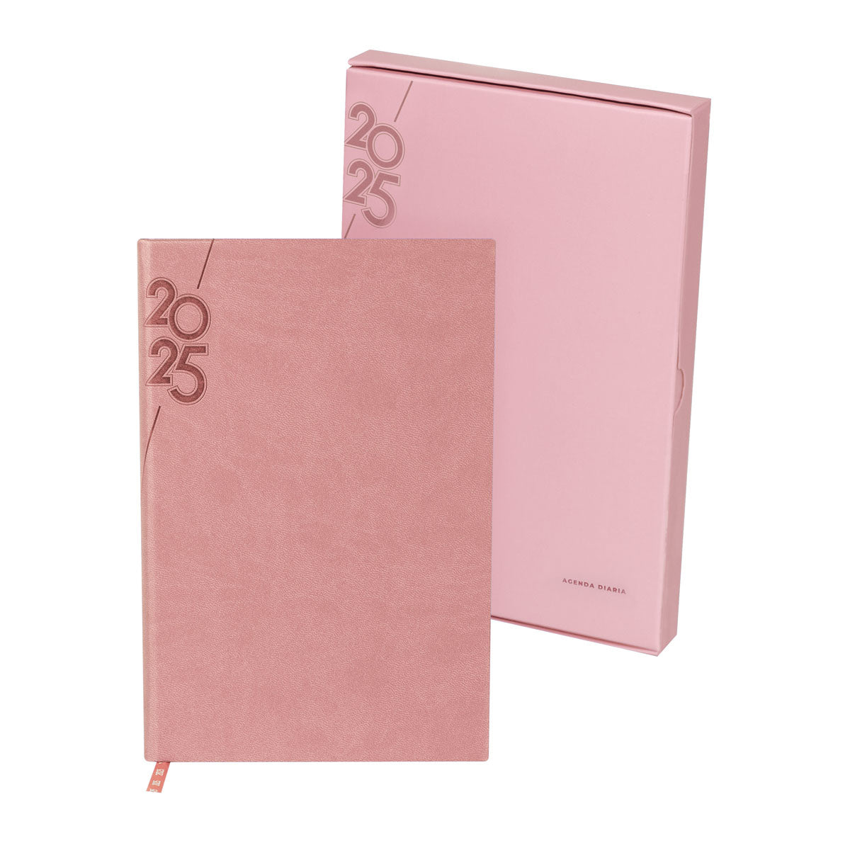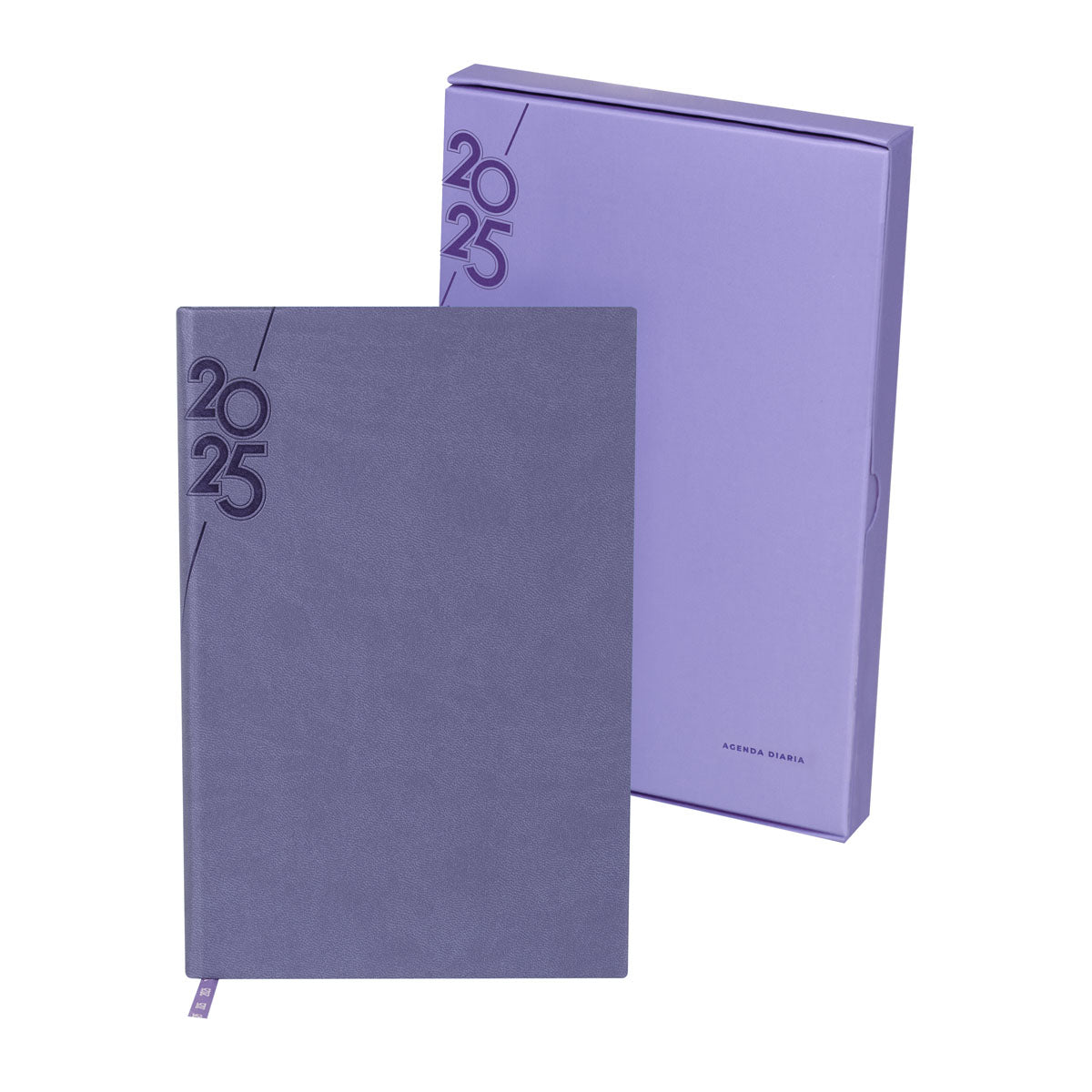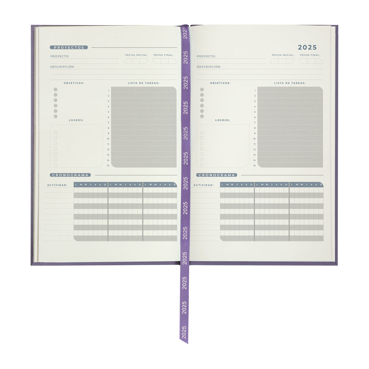 AGENDA DIARIA CON 186 HOJAS. CONTIENE DATOS PERSONALES, CALENDARIOS 2024-2025-2026, PLANEADOR 2025, SEGUIMIENTO DE NUEVOS HABITOS, ORGANIZADOR DE TAREAS, PLANEADOR DE PROYECTO Y DIAS FESTIVOS. INCLUYE CAJA INDIVIDUAL DEL MISMO COLOR A LA AGENDA.