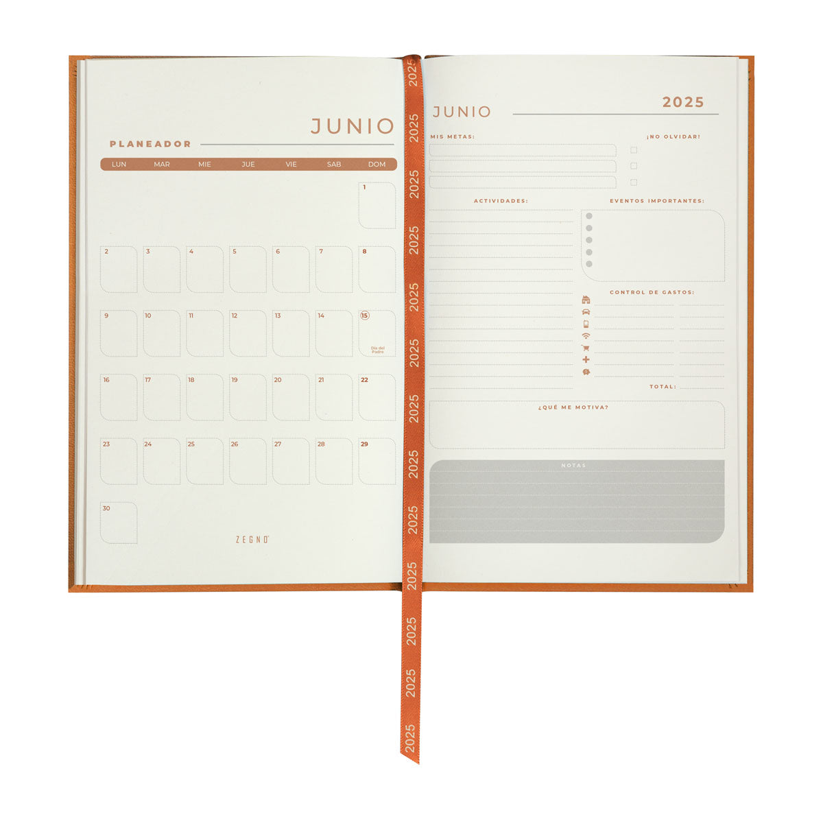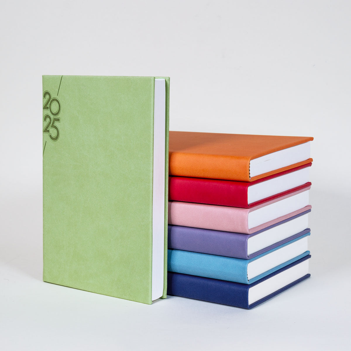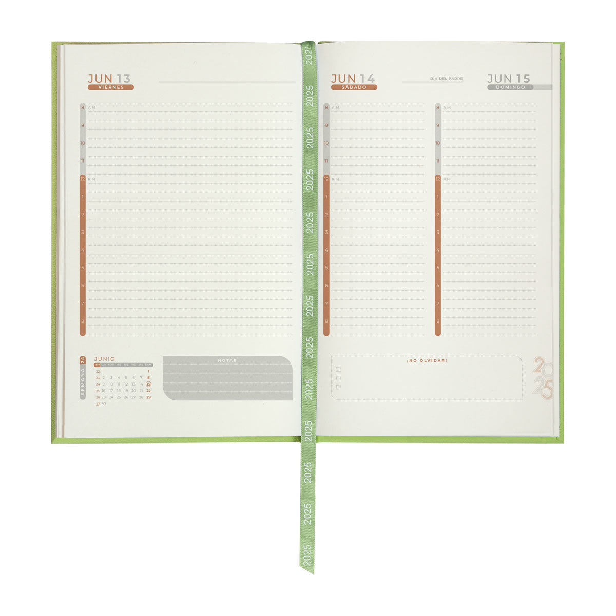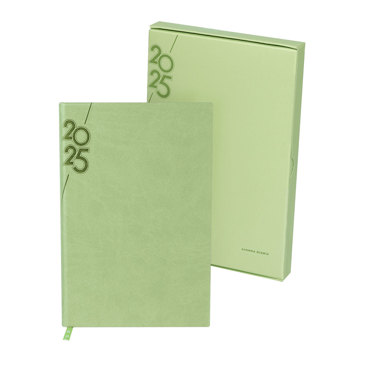 AGENDA DIARIA CON 186 HOJAS. CONTIENE DATOS PERSONALES, CALENDARIOS 2024-2025-2026, PLANEADOR 2025, SEGUIMIENTO DE NUEVOS HABITOS, ORGANIZADOR DE TAREAS, PLANEADOR DE PROYECTO Y DIAS FESTIVOS. INCLUYE CAJA INDIVIDUAL DEL MISMO COLOR A LA AGENDA.
