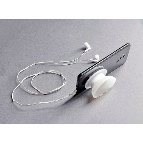 AUDÍFONOS ENROLLABLES, BASE CON VENTOSA PARA FÁCIL SUJECIÓN. FUNCIÓN SOPORTE PARA SMARTPHONE.