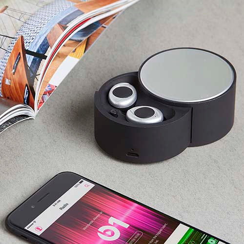 AUDÍFONOS BLUETOOTH INALÁMBRICOS CON BATERÍA RECARGABLE. FUNCIÓN MANOS LIBRES. REPRODUCCIÓN DE MÚSICA 1.5 HRS APROXIMADAMENTE. INCLUYE CABLE CARGADOR USB Y ESTUCHE PARA RECARGAR LOS AUDÍFONOS.