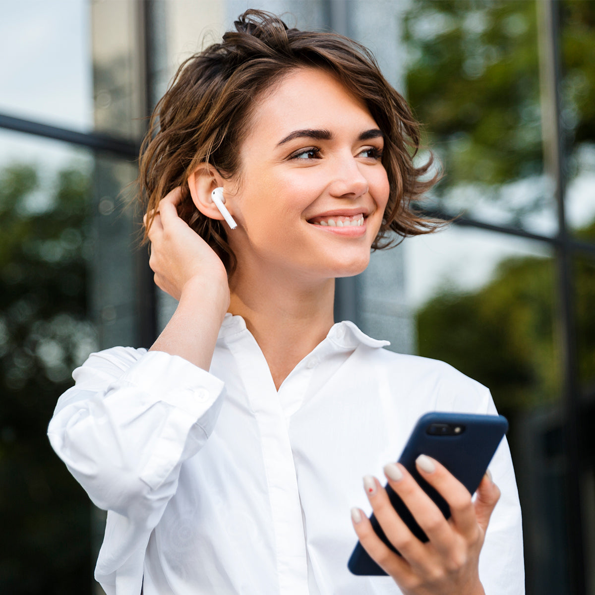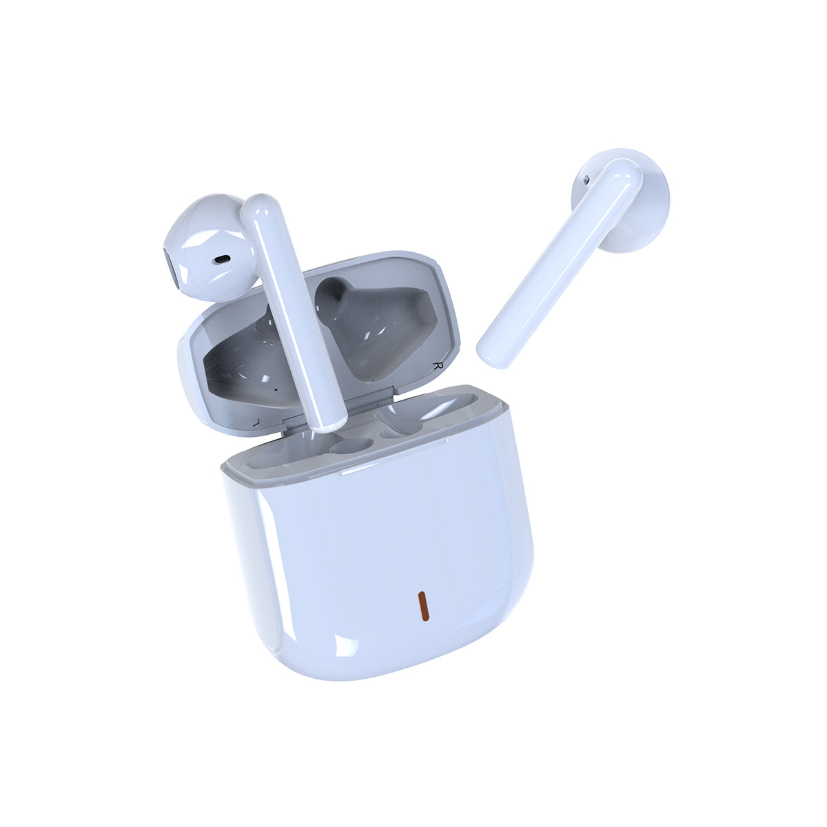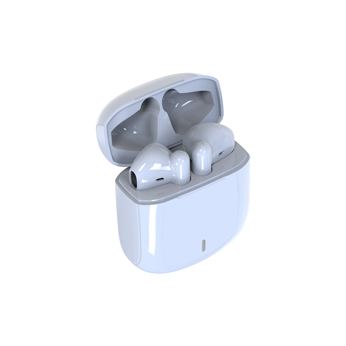 Audífonos con conexión de sonido sin cables fabricados en plástico ABS acabado glossy con función touch. Reproduce música durante 4 horas continuas y tiempo de llamada de 3.5 horas, aproximadamente. Incluye cable USB para carga y caja de cartón individual.