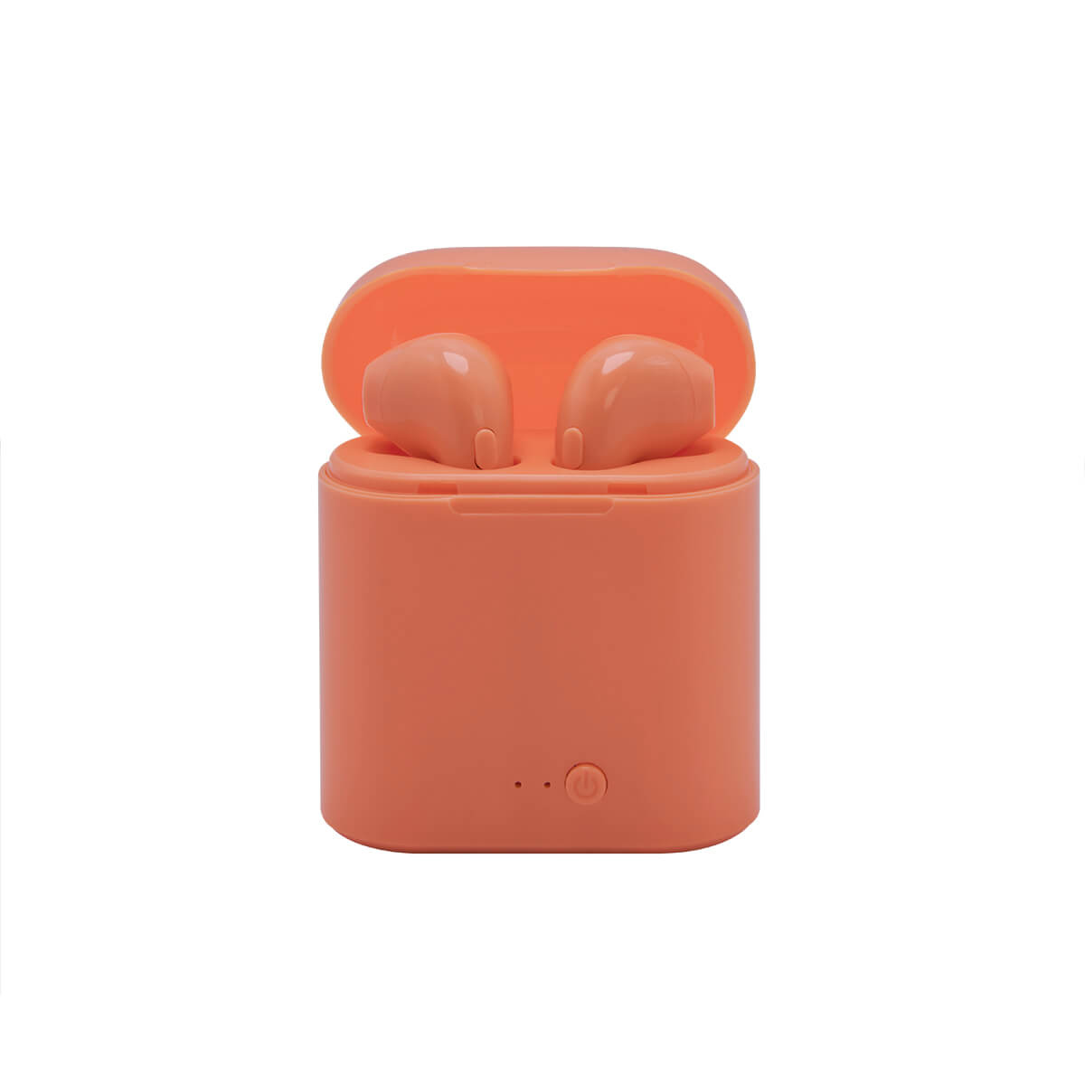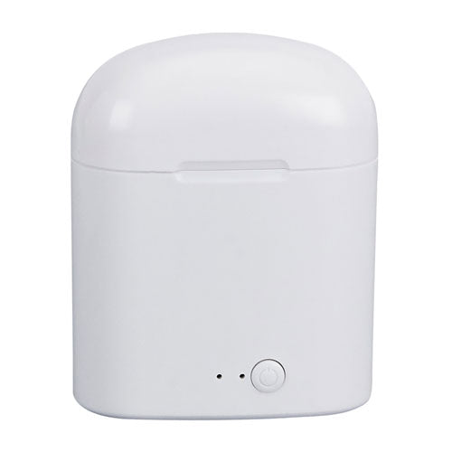 AUDÍFONOS BLUETOOTH INALÁMBRICOS CON BATERÍA RECARGABLE. FUNCIÓN MANOS LIBRES. REPRODUCCIÓN DE MÚSICA 2 HRS APROXIMADAMENTE. INCLUYE ESTUCHE PARA RECARGAR LOS AUDÍFONOS Y CABLE CARGADOR USB.