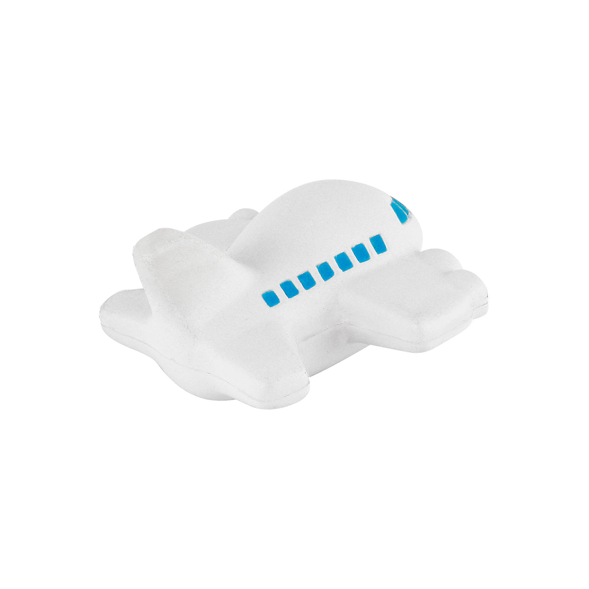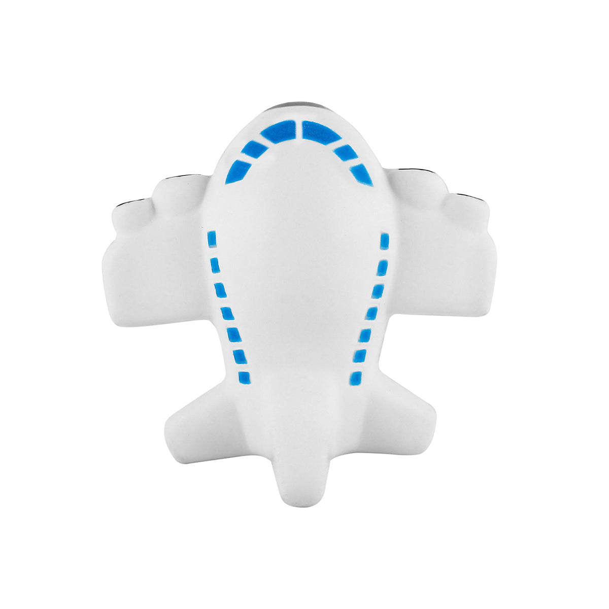 Avión antiestrés fabricado en poliuretano, con detalles en color azul, gris y negro, es una figura diseñada para aliviar el estrés y la tensión.