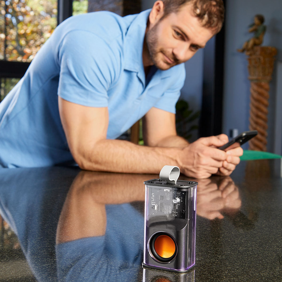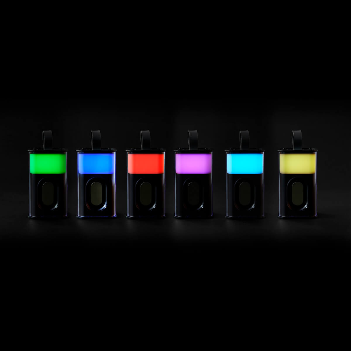 BOCINA BLUETOOTH RECARGABLE. LUZ RGB CON 7 EFECTOS DIFERENTES. REPRODUCCION DE MUSICA POR 3 HORAS APROXIMADAMENTE. TIEMPO DE CARGA 2-3 HORAS. ALCANCE DE CONEXION DE 10 METROS. BATERIA DE 500 MAH. CONEXION TIPO C. INCLUYE CABLE AUXILIAR Y ASA DE SILICON PARA TRANSPORTARLA FACILMENTE.