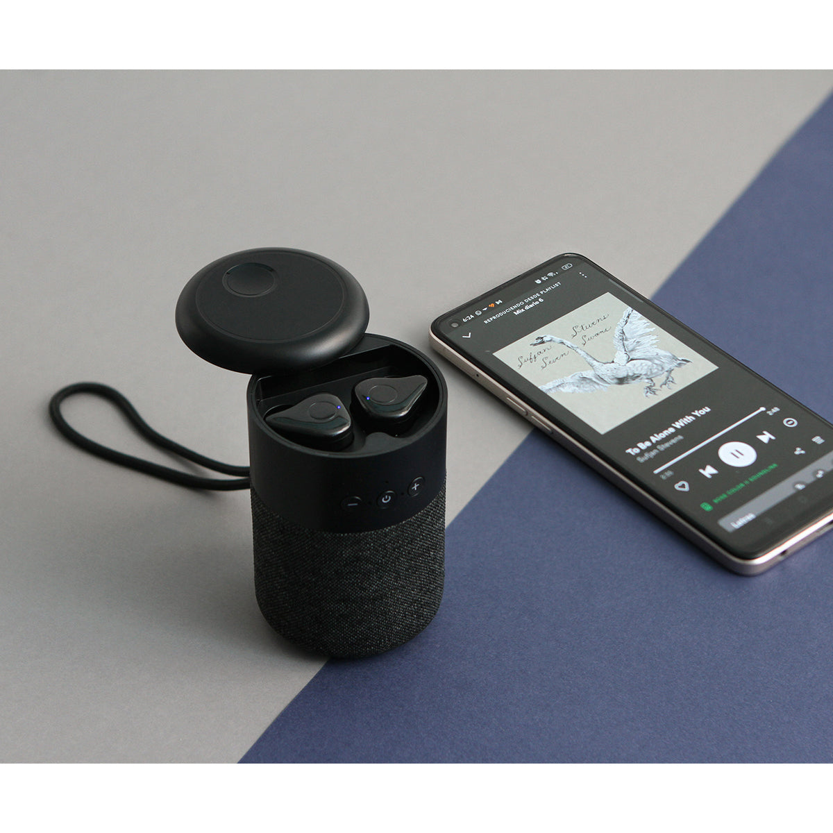 Bocina con conexión de sonido sin cables, auriculares incluidos fabricada en plástico ABS, entrada de USB Typo-C, control de volumen, cuenta con función para cancelar el ruido, tiempo de carga de 40-50 minutos y de reproducción de 3.5-4.5 horas. Cuenta con un cordón que te permite llevarla a cualquier parte teniendo la posibilidad de usar las bocinas o los auriculares en cualquier momento. Incluye caja individual