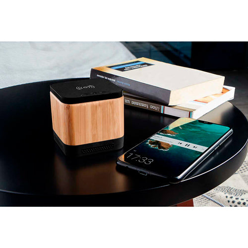 BOCINA BLUETOOTH CON BATERIA RECARGABLE. REPRODUCCION DE MUSICA DE 2 HRS APROXIMADAMENTE. CONTROLES INTEGRADOS DE LLAMADAS, VOLUMEN Y REPRODUCCION DE AUDIO. RANGO DE CONEXION DE 10 METROS. LA BASE AL ESTAR CONECTADA, FUNCIONA COMO CARGADOR INALAMBRICO DE SMARTPHONE. INCLUYE CABLE CARGADOR USB.