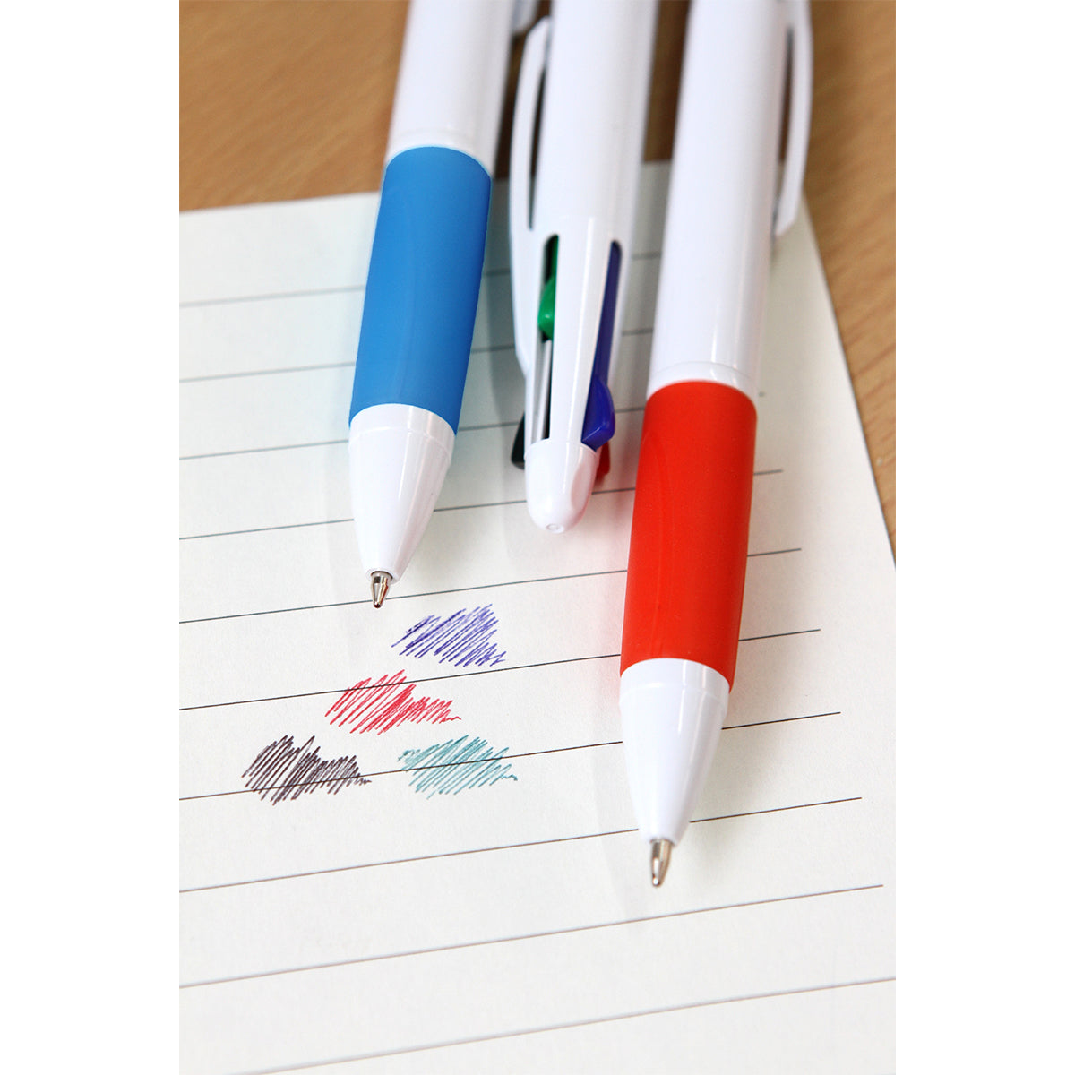 Bolígrafo 4 en 1, con barril de plástico ABS y grip suave, 4 colores de escritura (azul, negro, rojo, verde).