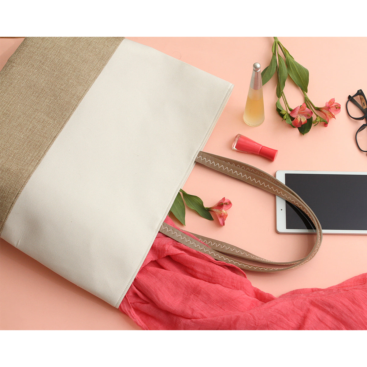 Bolsa de playa bi-tono fabricada en poliéster, con asas superiores de poliuretano, cuenta con detalle de color en la parte inferior. Su tamaño es ideal para llevar lo necesario a un día de playa.