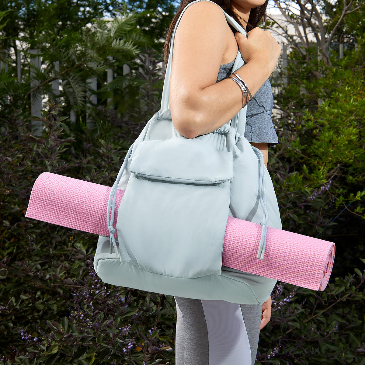 BOLSA DEPORTIVA, OFRECE AMPLIO ESPACIO PARA LLEVAR TUS ARTICULOS ESENCIALES O ACCESORIOS DEPORTIVOS, TAMBIEN CUENTA CON UN COMPARTIMENTO DEDICADO PARA TRANSPORTAR TU TAPETE DE YOGA. INCLUYE COMPARTIMENTO PRINCIPAL CON CIERRE POR MEDIO DE JARETA Y BOLSILLO FRONTAL DE VELCRO. SUS ASAS LAGAS Y SU DISENO ERGONOMICO GARANTIZAN COMODIDAD DURANTE EL TRANSPORTE, MIENTRAS QUE SU ESTILO MODERNO LA CONVIERTE EN UN ACCESORIO IMPRESCINDIBLE TANTO PARA EL GIMNASIO COMO PARA TUS SESIONES DE YOGA AL AIRE LIBRE.