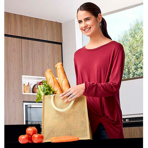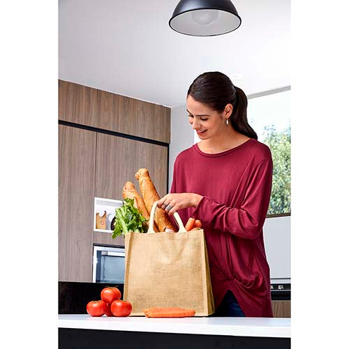 BOLSA CON FUELLE Y ASAS REDONDEADAS. INTERIOR PLASTIFICADO.