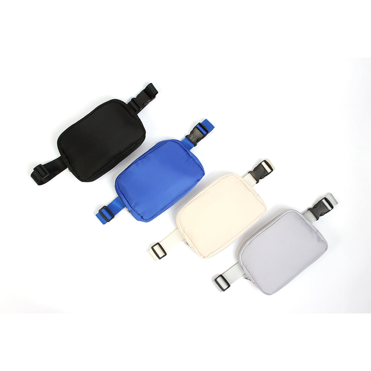 Cangurera / Riñonera, fabricada en poliéster.  Incluye compartimento principal y correa ajustable. Puede utilizarse también como crossbody. Disponible en cuatro colores. Cierre de color similar a tela de la bolsa.