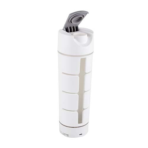 CILINDRO CON BOCINA BLUETOOTH. FUNCIÓN MANOS LIBRES. CONTROLES INTEGRADOS DE VOLUMEN Y REPRODUCCIÓN DE AUDIO. DISPARADOR DE CÁMARA AL SINCRONIZAR CON EL SMARTPHONE. BASE PARA TABLET Y SMARTPHONE. BOCINA REMOVIBLE CON EFECTOS DE LUCES. INCLUYE CABLE USB Y BATERÍA RECARGABLE. TAPA DE PLÁSTICO CON CIERRE DE ROSCA Y BOQUILLA, SOBRETAPA CON CIERRE DE PRESIÓN. CAJA INDIVIDUAL INCLUIDA. ESTE PRODUCTO POR SER ÚLTIMAS PIEZAS PUEDE PRESENTAR ALGUNA VARIACIÓN, NO SE ACEPTAN DEVOLUCIONES.