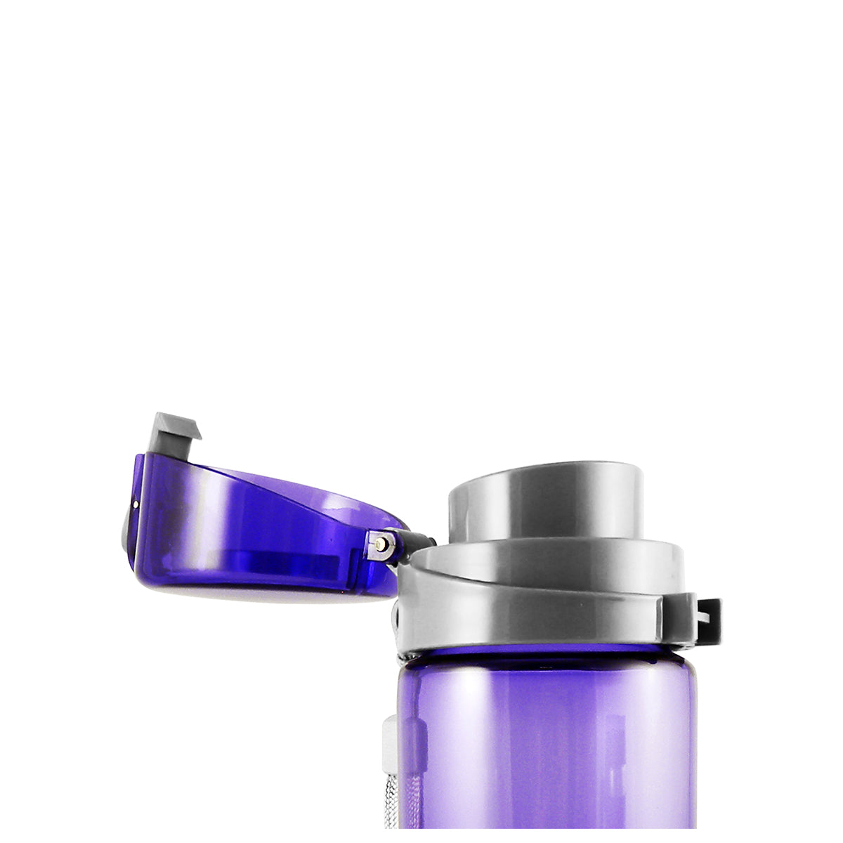 Cilindro de Tritan con seguro en tapa de polipropileno y correa sujetadora, capacidad de 700 ml (23.5 oz).
