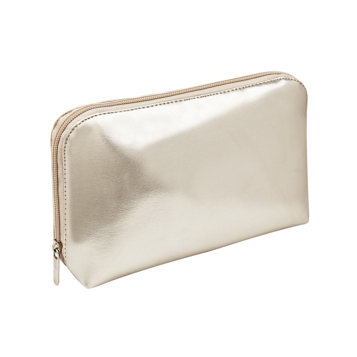 COSMETIQUERA METALIZADA CON FUELLE. COMPARTIMENTO PRINCIPAL CON CIERRE.