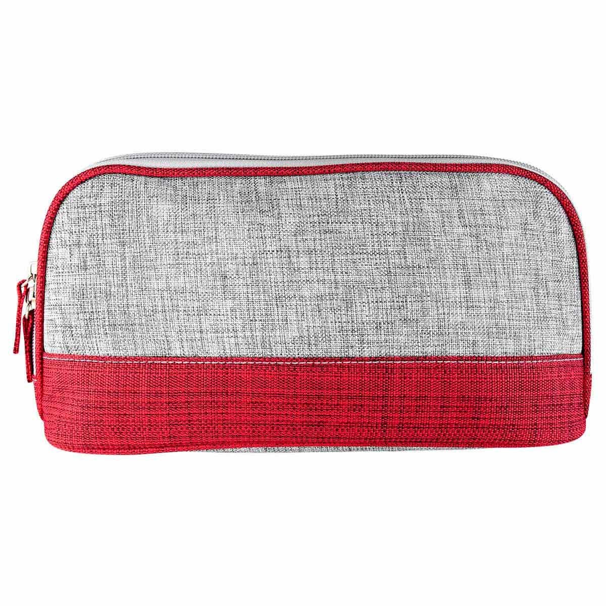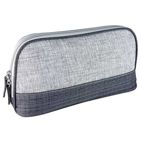 COSMETIQUERA DE POLIÉSTER COLOR GRIS CON FRANJA DE COLOR Y CIERRE