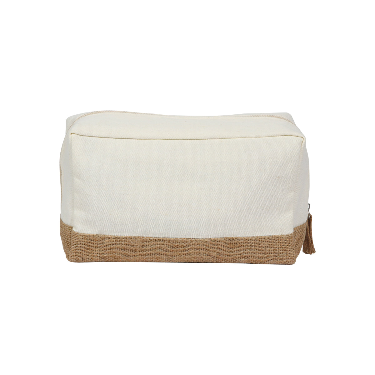 Cosmetiquera bi-tono fabricada en algodón y yute; con cierre superior y gran espacio para impresión. Tiene un gran espacio para satisfacer sus necesidades de almacenamiento.