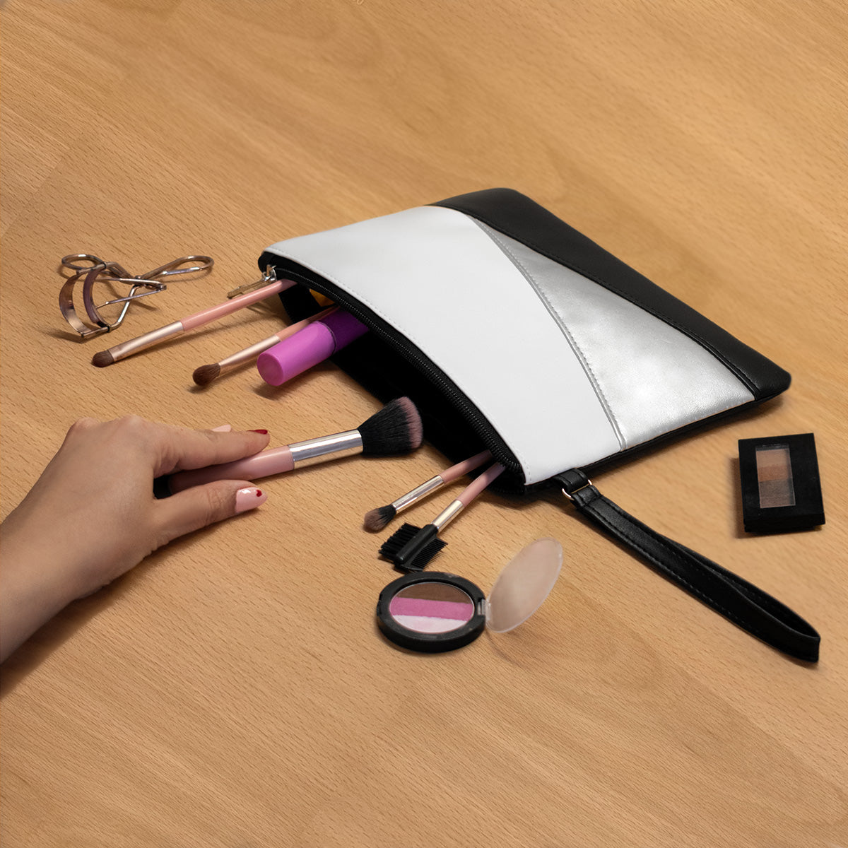 COSMETIQUERA CON DISEÑO EN 3 COLORES. CUENTA CON COMPARTIMENTO CON CIERRE Y UNA ASA PARA TRANSPORTARLA. MANTÉN TUS PRODUCTOS ESENCIALES DE BELLEZA ORGANIZADOS Y ACCESIBLES EN TODO MOMENTO.