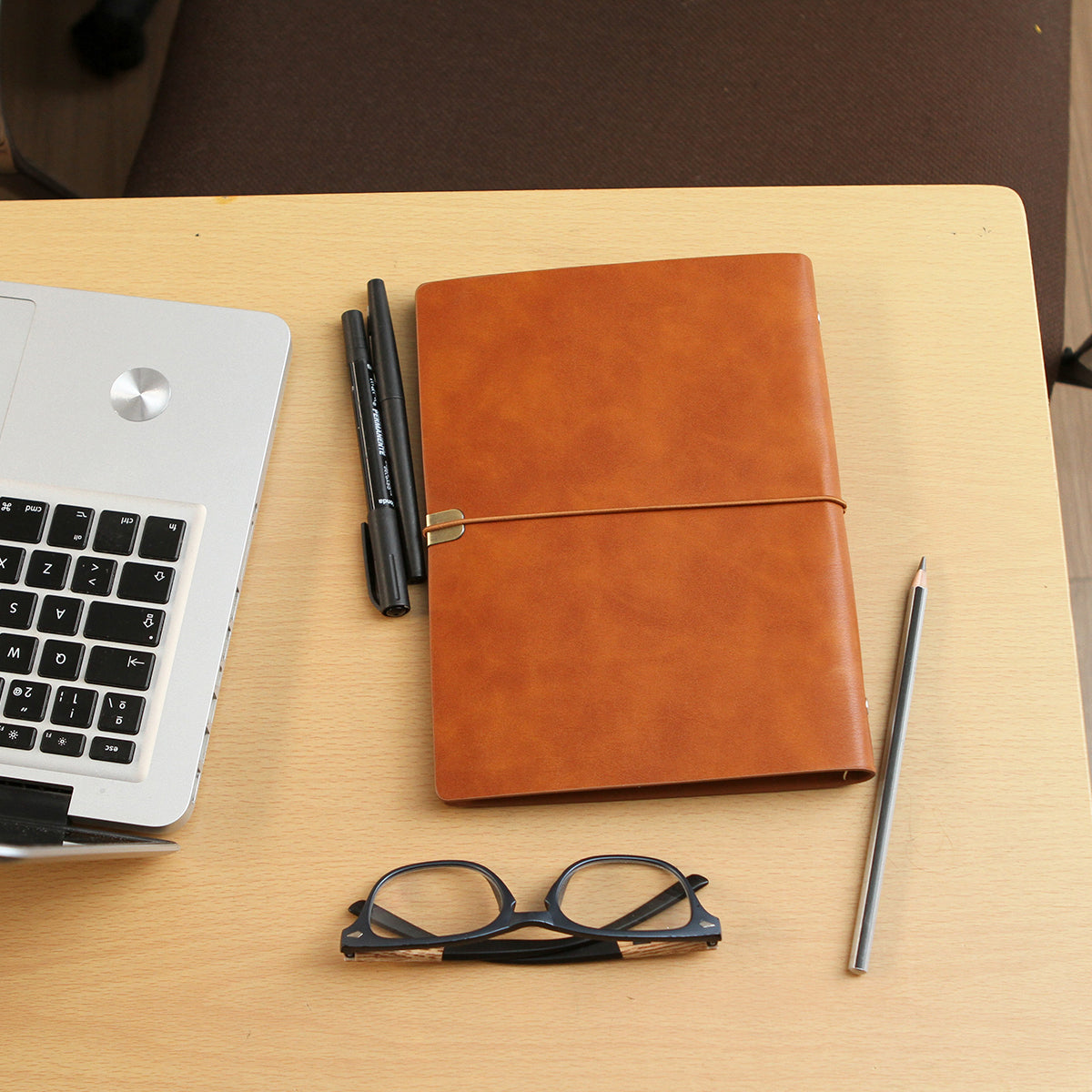Carpeta con interiores estilo carpeta con cubierta fabricada en curpiel, con 80 hojas. Incluye resorte de cierre y detalle metálico.