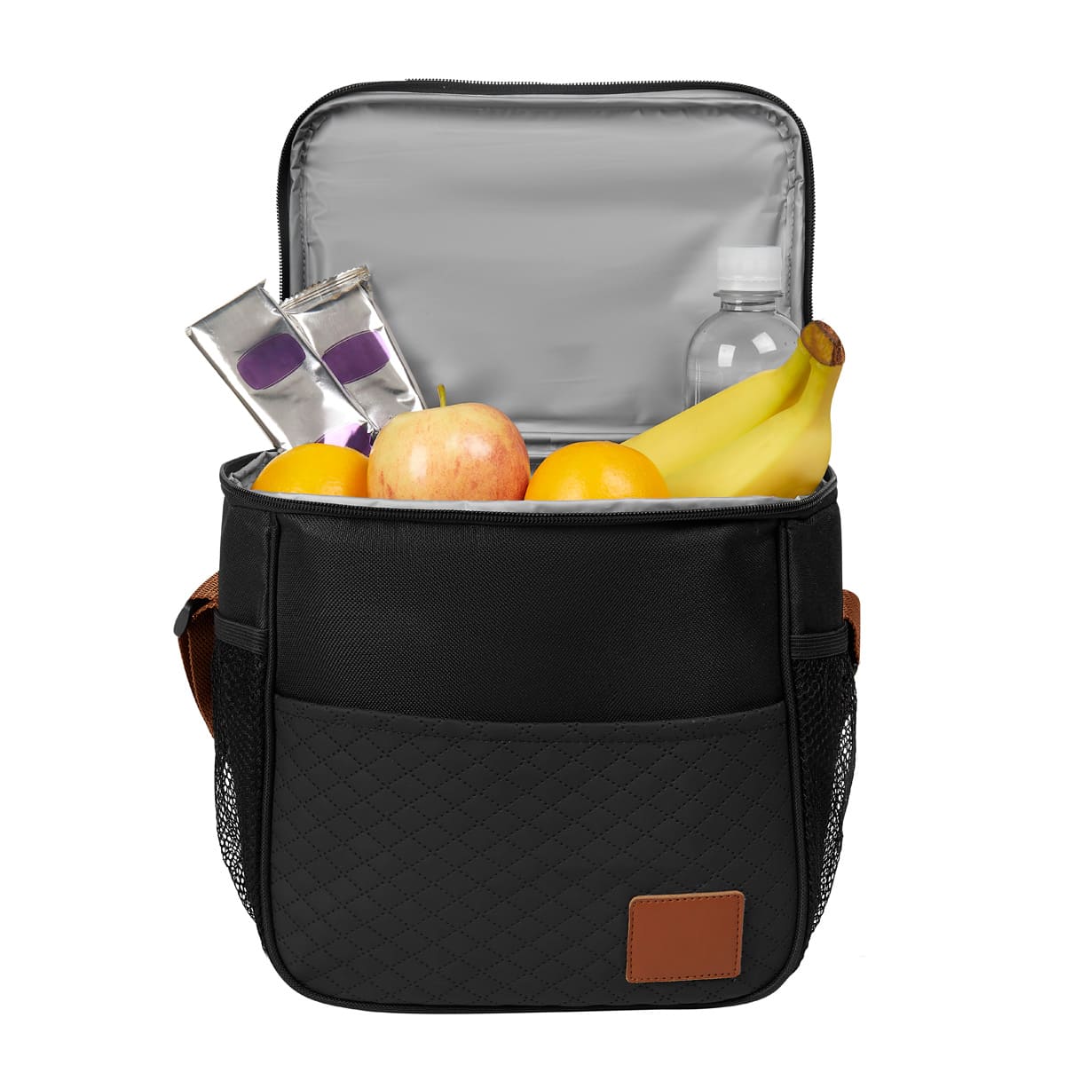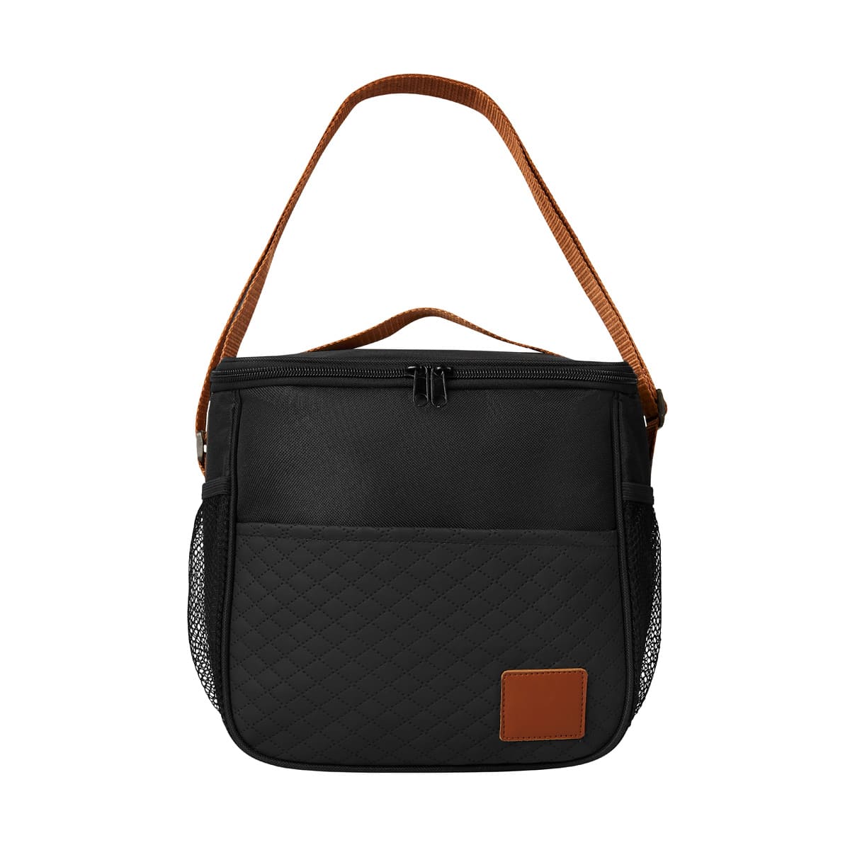 LONCHERA CON INTERIOR PLASTIFICADO, BOLSA PRINCIPAL CON CIERRE, 2 BOLSILLOS LATERALES DE RED Y BOLSA FRONTAL CON DISENO CAPITONADO Y CON PARCHE DE CURPIEL. PARA MAYOR COMODIDAD CUENTA CON ASA DE TRANSPORTE SUPERIOR Y CORREA AJUSTABLE PARA HOMBRO. CAPACIDAD PARA 9 LATAS.