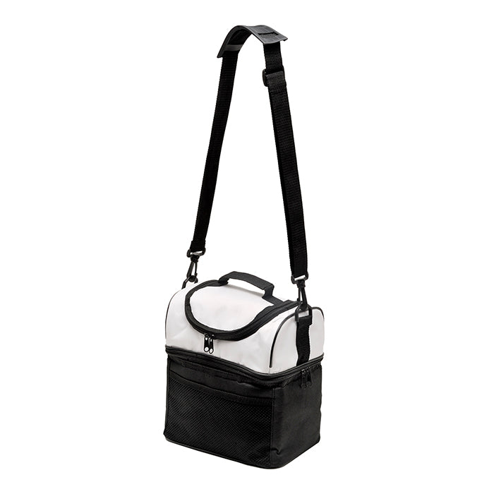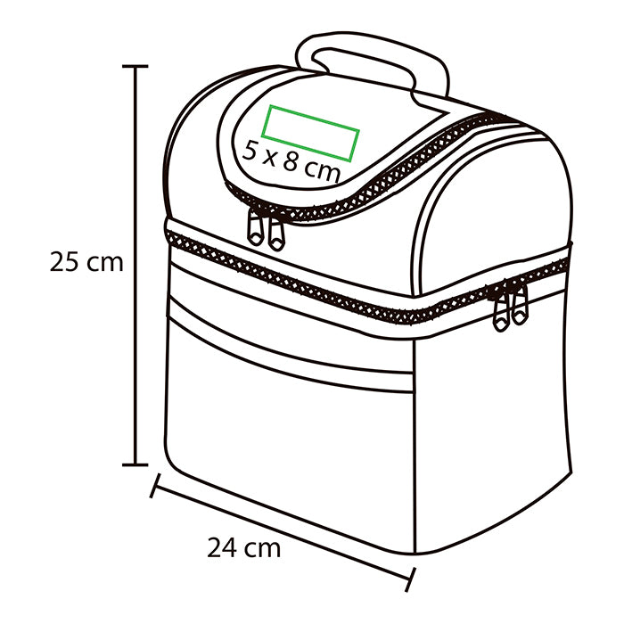 Lonchera fabricada en nylon resistente, lo que le confiere durabilidad y resistencia al desgaste. Cuenta con dos compartimentos separados, uno diseñado específicamente para mantener los alimentos fríos y otro para mantener los alimentos calientes, incluye una correa de hombro ajustable, lo que facilita su transporte, cuenta con un asa resistente en la parte superior, brindándote otra opción de transporte cuando lo prefieras, frente de la lonchera, encontrarás una bolsa tipo red que te permite guardar utensilios.