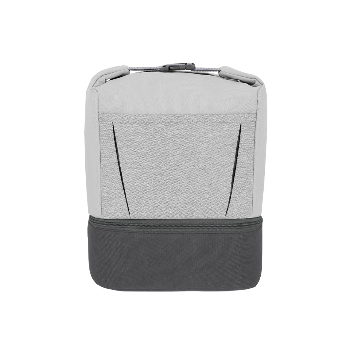 INTERIOR PLASTIFICADO. DOBLE COMPARTIMENTO CON CIERRE. BOLSILLO FRONTAL. AGARRADERA CON BROCHE DE PLASTICO. CAPACIDAD PARA 9 LATAS.