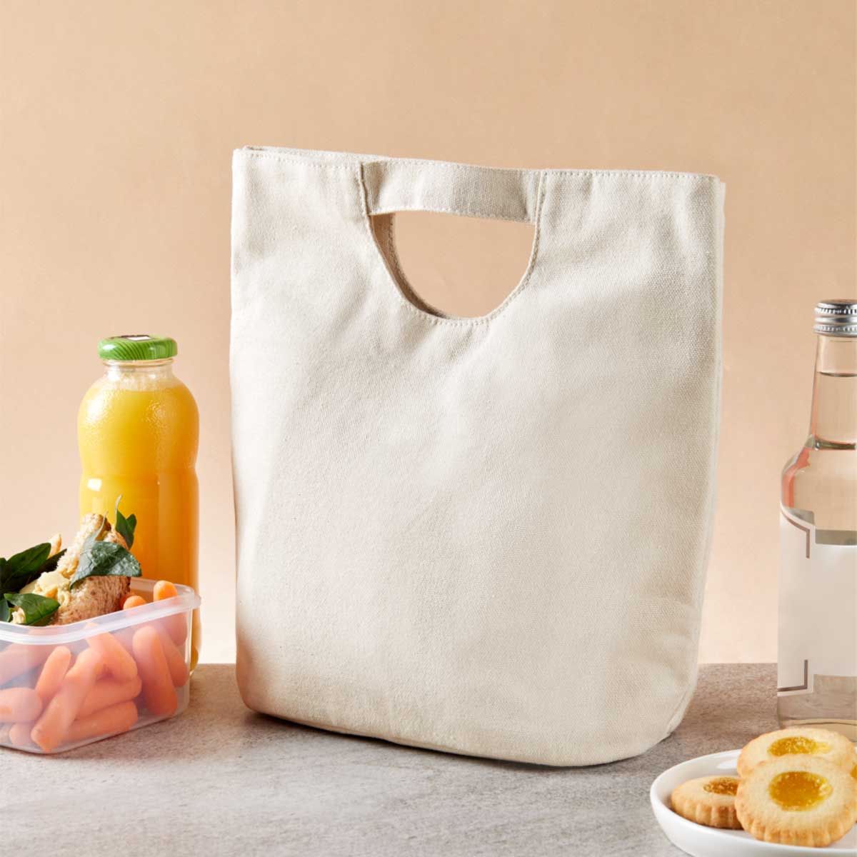 LONCHERA CON ASA DE MANO Y FUELLE EN LA BASE. INCLUYE BROCHE DE IMANTADO PARA CERRAR. INTERIOR METALIZADO. CAPACIDAD PARA 4 LATAS.