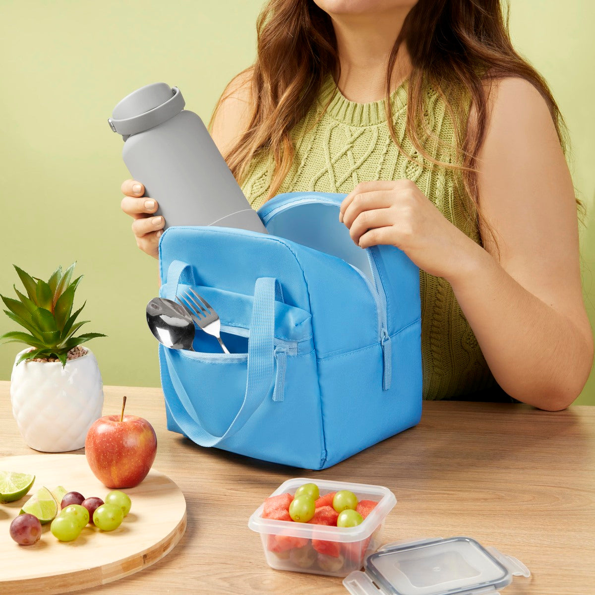 LONCHERA FABRICADA EN POLIESTER RESISTENTE Y DURADERO, CUENTA CON UN FORRO PLASTIFICADO QUE FACILITA SU LIMPIEZA. EL COMPARTIMENTO PRINCIPAL, TIENE UN CIERRE Y UN BOLSILLO FRONTAL PARA LLEVAR OBJETOS PEQUENOS COMO, CUBIERTOS, SNACKS O UTENSILIOS. SUS DOS ASAS SUPERIORES FACILITAN SU TRASLADO Y SE PUEDEN UNIR CON UN PRACTICO BROCHE PARA MAYOR COMODIDAD. CON UNA CAPACIDAD PARA 9 LATAS, ESTA LONCHERA ES IDEAL PARA LLEVAR TUS COMIDAS Y BEBIDAS FAVORITAS DE MANERA SEGURA Y ORGANIZADA.