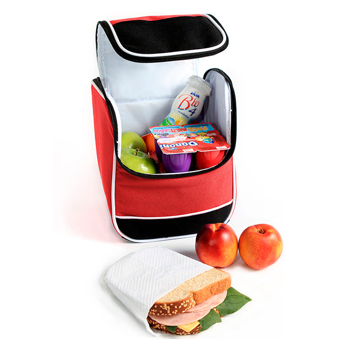 Lonchera térmica fabricada en poliéster, un material resistente y fácil de limpiar. Su diseño térmico cuenta con un forro interno de PEVA eco-friendly,  tiene una asa superior resistente que te permite transportarla cómodamente.