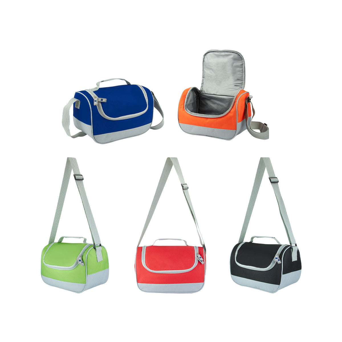 INTERIOR PLASTIFICADO. BOLSA PRINCIPAL CON CIERRE. ASA DE AGARRE SUPERIOR Y CORREA AJUSTABLE. CAPACIDAD PARA 6 LATAS.
