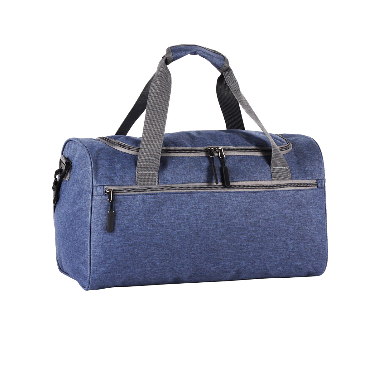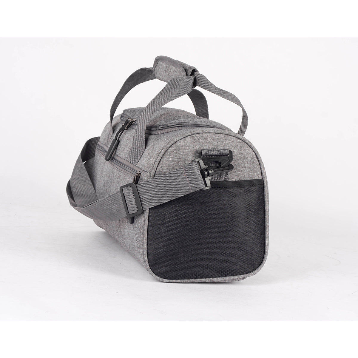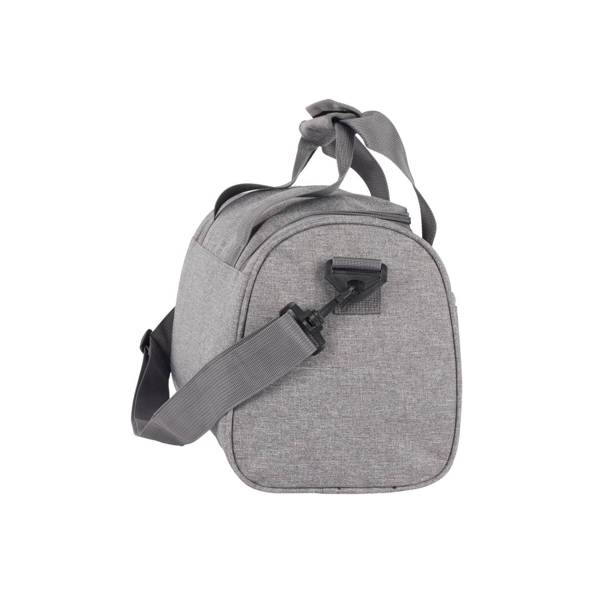 Maleta deportiva compacta fabricada en poliéster con bolsillo frontal, bolsillo lateral de malla, asas superiores, correa para hombro ajustable y desmontable. Costuras 100% resistentes para una máxima durabilidad.