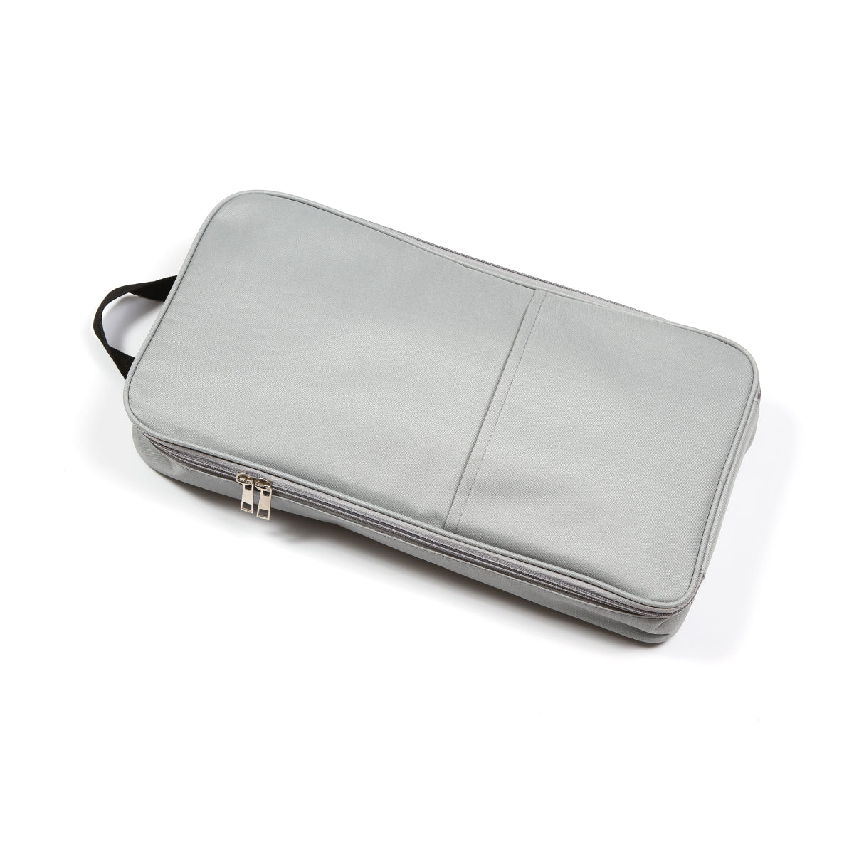 Set de BBQ con estuche fabricado en tela oxford (600D poliéster). Incluye indumentaria para asador: espátulas, tenedor, pinzas, tijeras, y destapador.