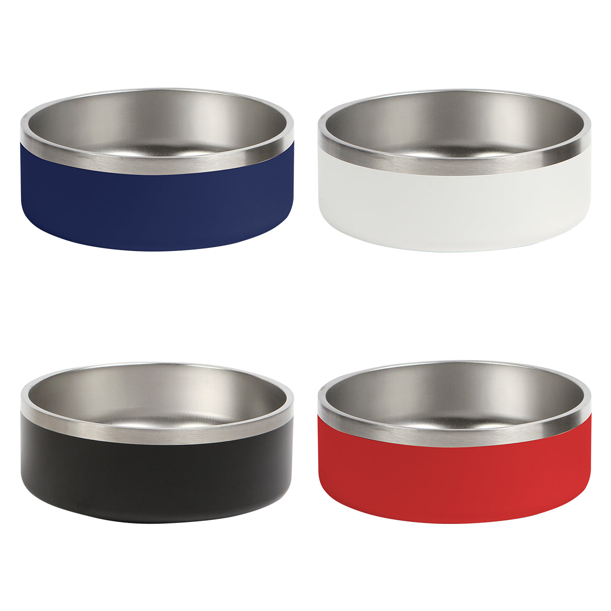 Tazón fabricado en acero inoxidable, material duradero, resistente y seguro para los alimentos. Por su material no  poroso es muy facil de limpiar y evita la acumulación de bacterias y olores. Cuenta con un anillo antiderrapante en la base, que evita que el tazón se deslice o se mueva al uso. Capacidad de 42 onzas. Incluye caja de cartón individual.