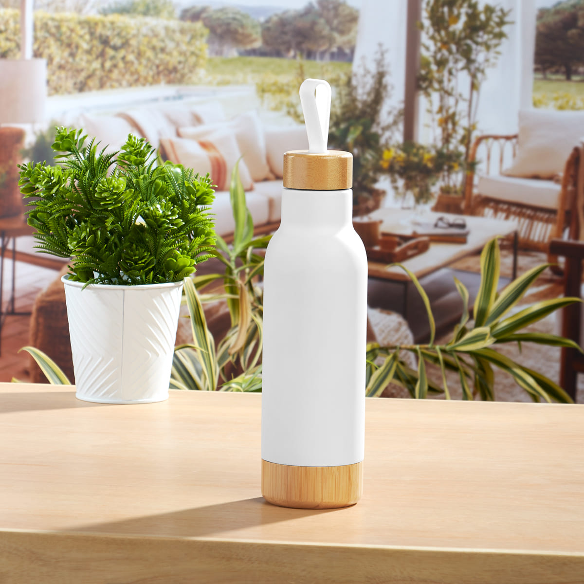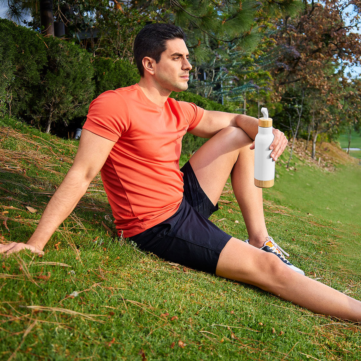 DOBLE PARED. CERRADO AL VACIO. PARED INTERNA Y EXTERNA DE ACERO INOXIDABLE. TAPA DE BAMBU CON SISTEMA DE ROSCA, ASA DE SILICON Y BASE DE BAMBU. MANTIENE TEMPERATURA CALIENTE 6 HRS Y TEMPERATURA FRIA 12 HRS. INCLUYE CAJA INDIVIDUAL. EL BAMBU ES UN PRODUCTO NATURAL EL CUAL PUEDE PRESENTAR VARIACIONES EN TONALIDADES Y VETAS.