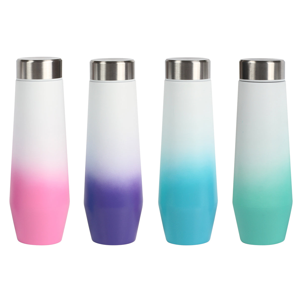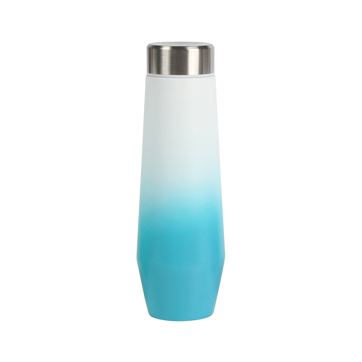 Termo degradado con doble pared de acero inoxidable, tapa metálica de rosca. Fabricado en materiales de grado alimenticio, mantiene bebidas calientes por un largo tiempo, no usar en microondas. Capacidad de 530 ml. Incluye caja de cartón individual.