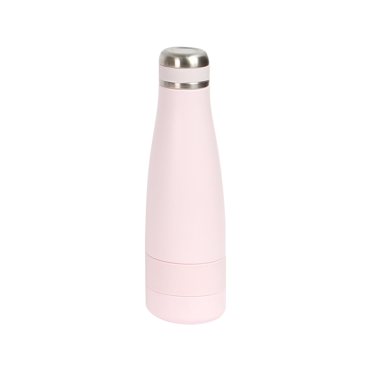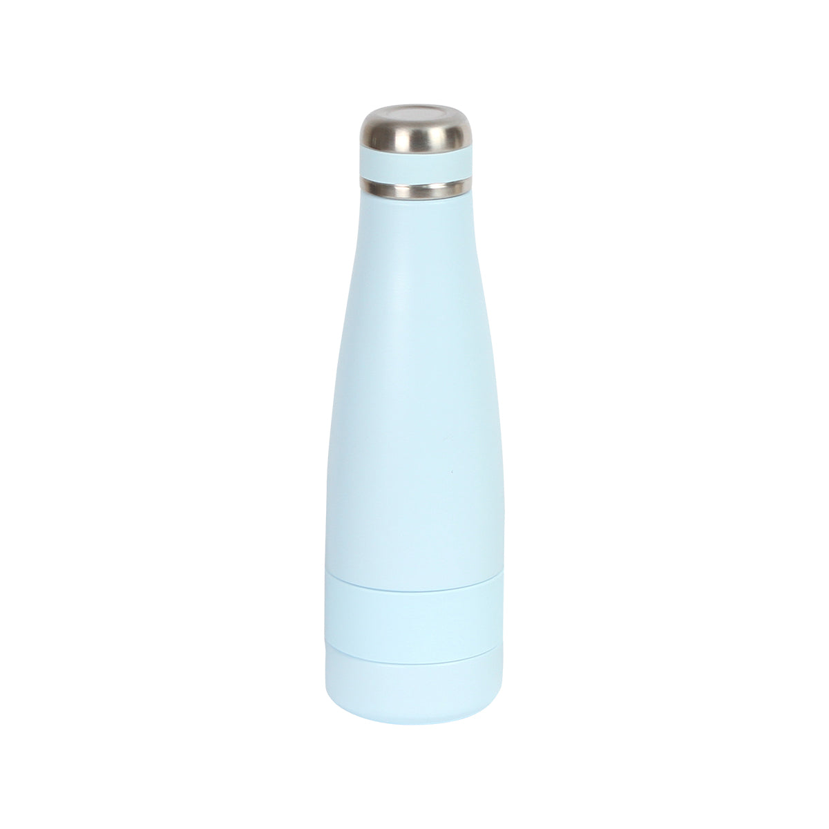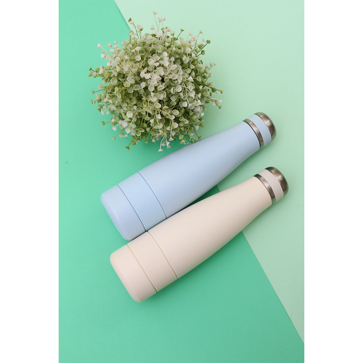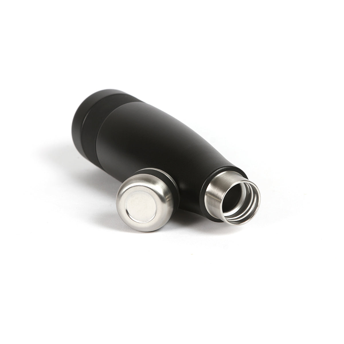 Termo de doble pared fabricado en acero inoxidable, interior 304 y exterior 201. Incluye tapa de rosca. Pintado con acabado de recubrimiento de polvo, resultando colores brillantes de alta calidad. Capacidad de 600 ml.