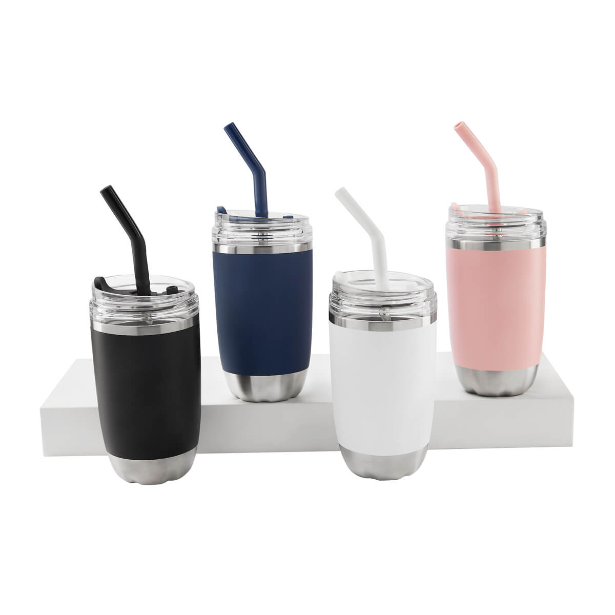 DOBLE PARED. CERRADO AL VACIO. PARED INTERNA Y EXTERNA DE ACERO INOXIDABLE. TAPA PUSH DE PLASTICO CON SOBRETAPA DE SILICON REMOVIBLE Y RANURA ESPECIAL CON TAPON PARA POPOTE. INCLUYE POPOTE METALICO CON BOQUILLA DE SILICON. MANTIENE TEMPERATURA CALIENTE 2 HRS Y TEMPERATURA FRIA 8 HRS. CAJA INDIVIDUAL INCLUIDA.