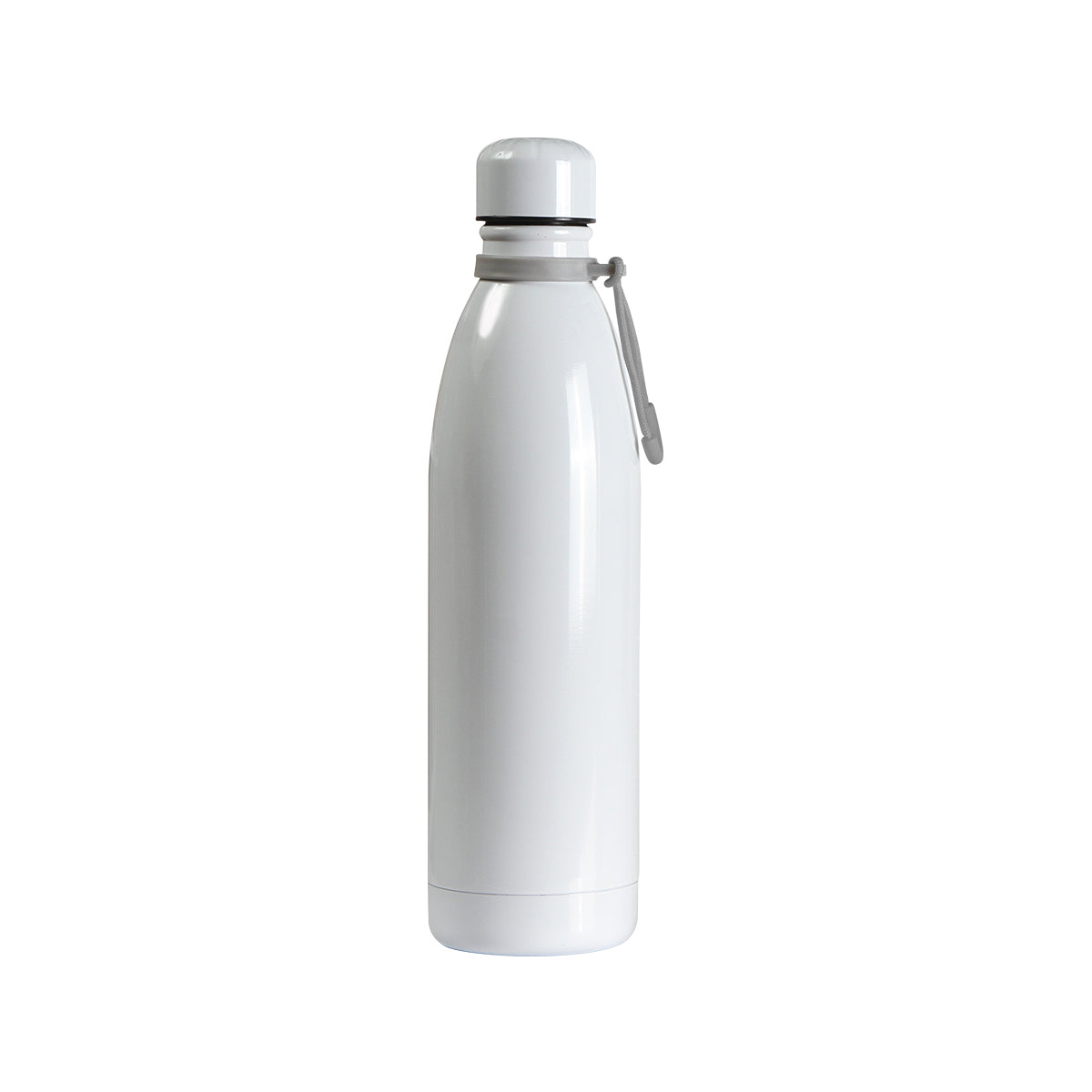 Termo de acero inoxidable doble pared con tapa de rosca y cordón en el cuello para su fácil transporte.Está fabricado en materiales de grado alimenticio y el acero inoxidable permite mantener tus bebidas frías o calientes por un largo tiempo.  No usar en microondas. Capacidad de 750 ml, Incluye caja individual