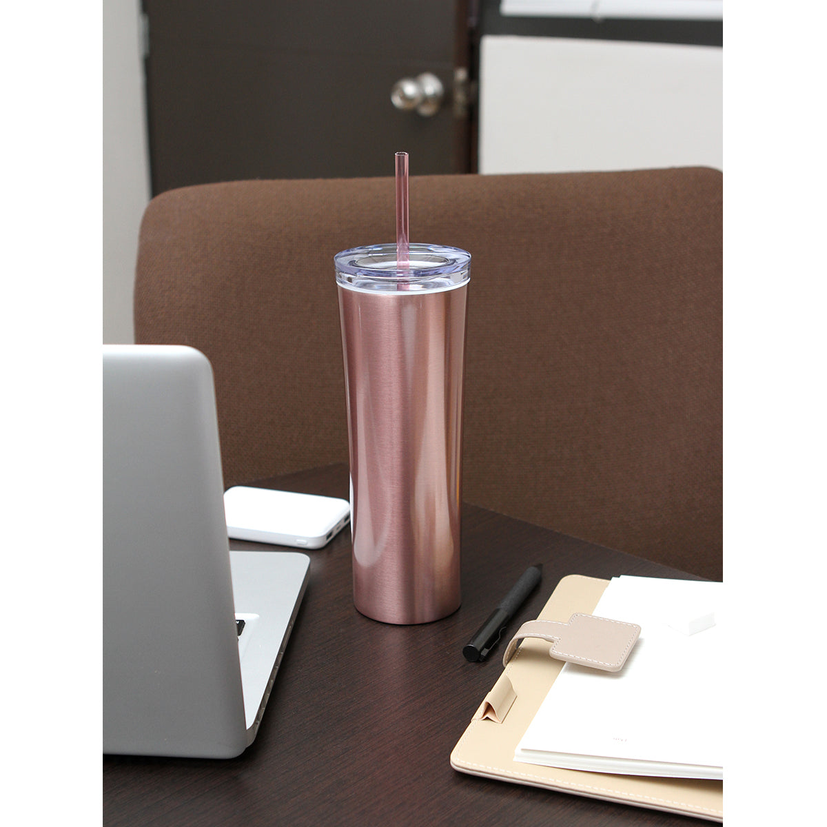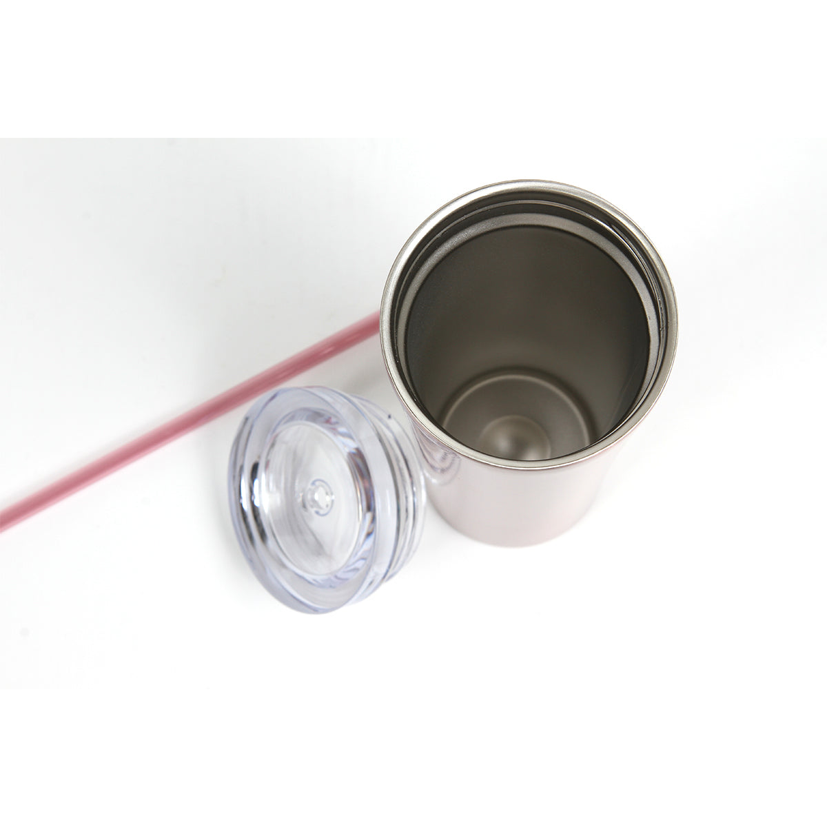 Termo de acero inoxidable doble pared con tapa de plástico transparente y popote, fabricado en materiales de grado alimenticio, mantiene bebidas frías o calientes por un largo tiempo, no usar en microondas. Capacidad 470 ml (16oz). Incluye caja de cartón individual.