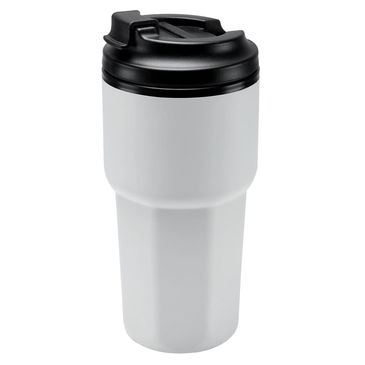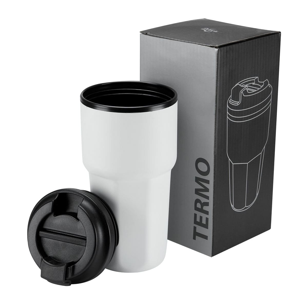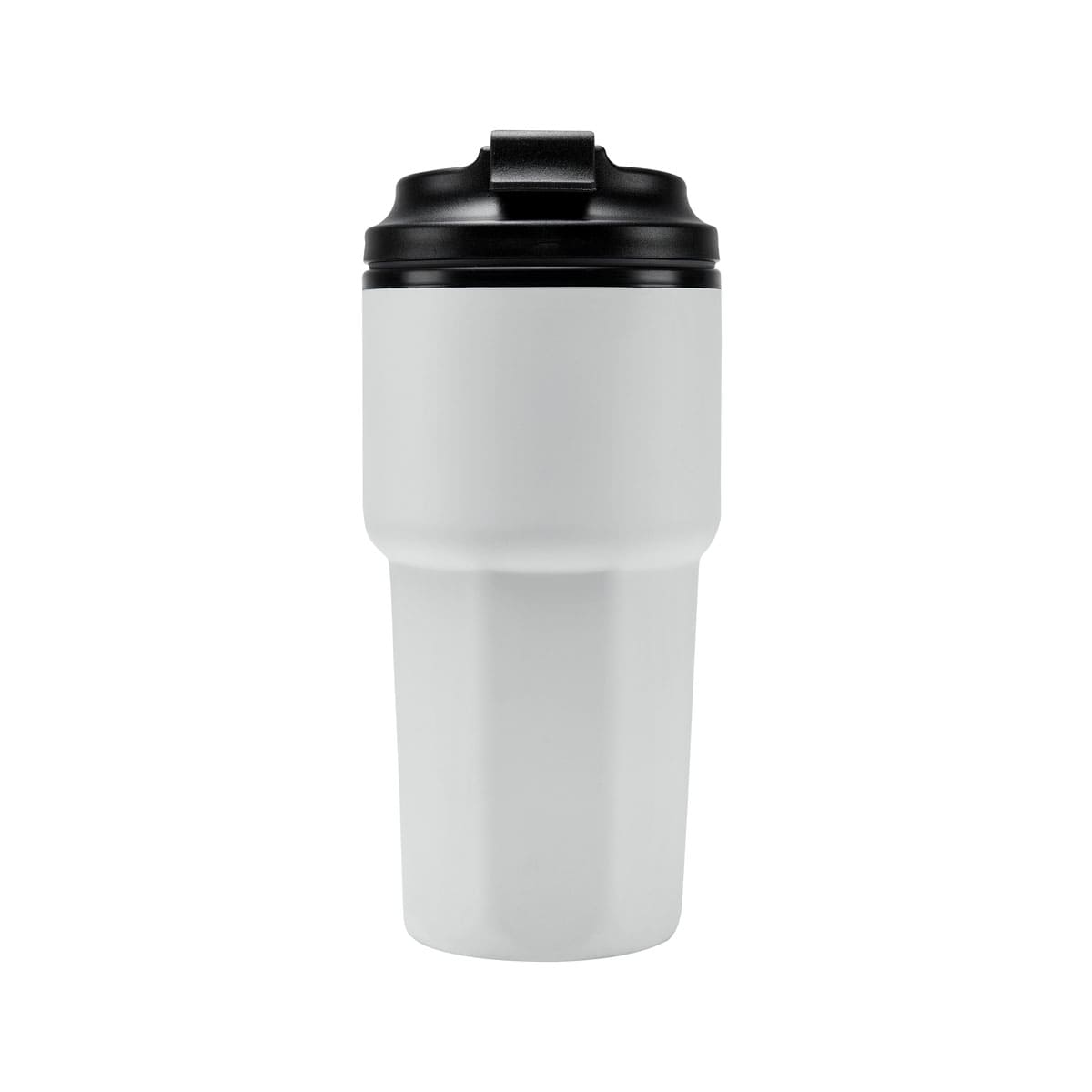 DOBLE PARED. PARED INTERNA PLASTICO, PARED EXTERNA ACERO INOXIDABLE. BASE DE TERMO CON FORMA HEXAGONAL. TAPA DE PLASTICO CON BOQUILLA Y SOBRE TAPA DE CIERRE A PRESION. TERMINADO MATE. INCLUYE CAJA INDIVIDUAL