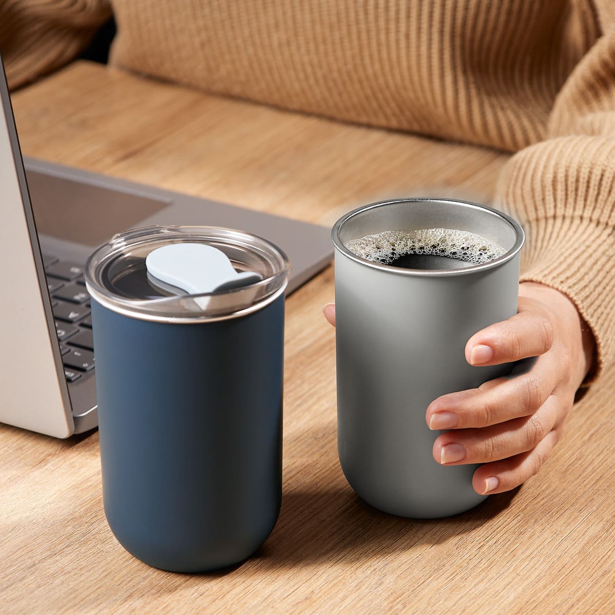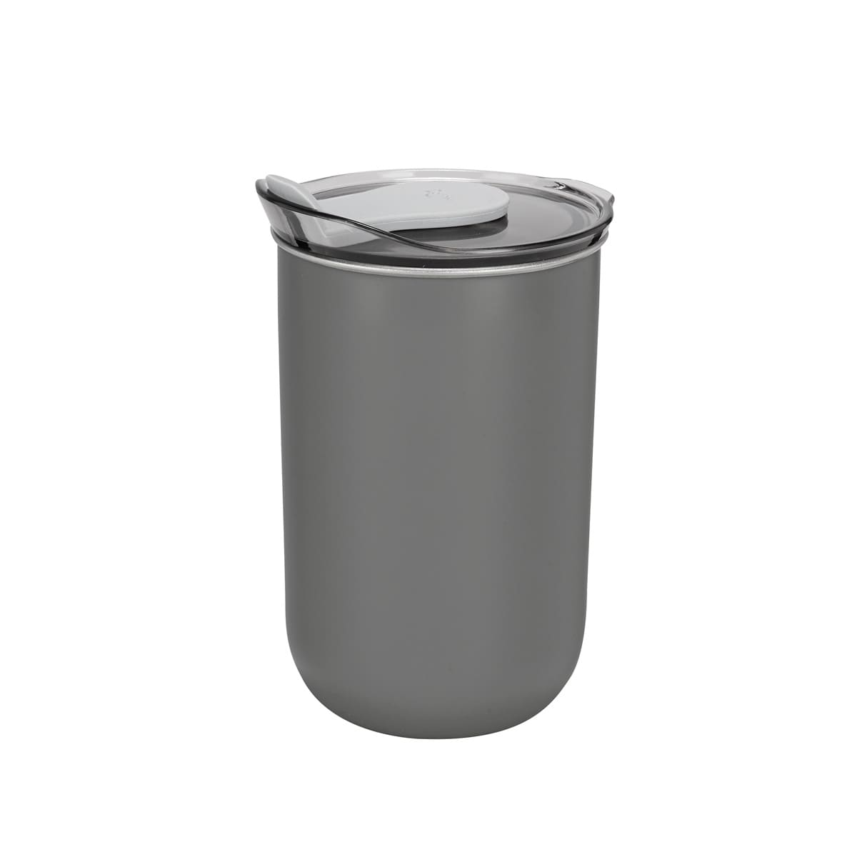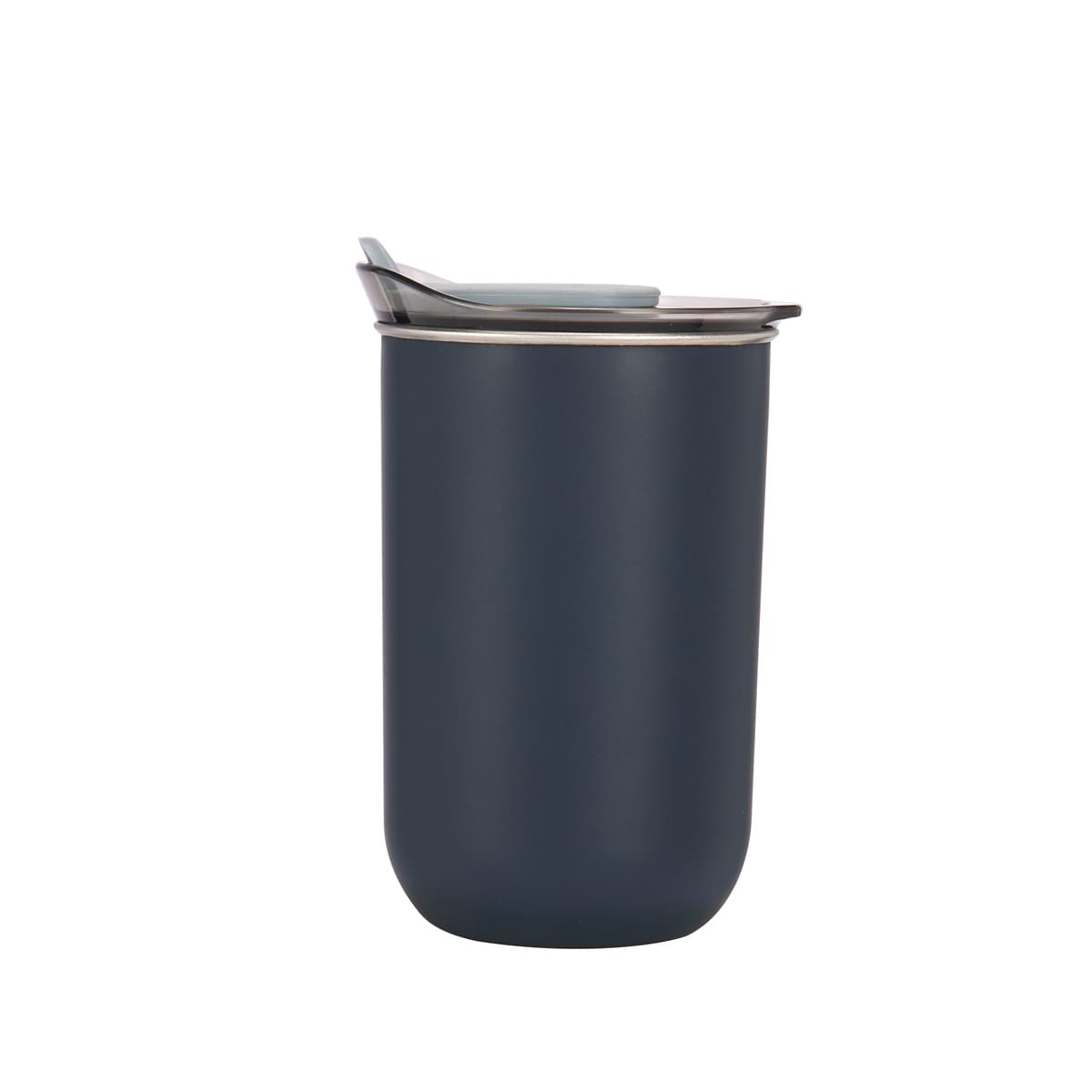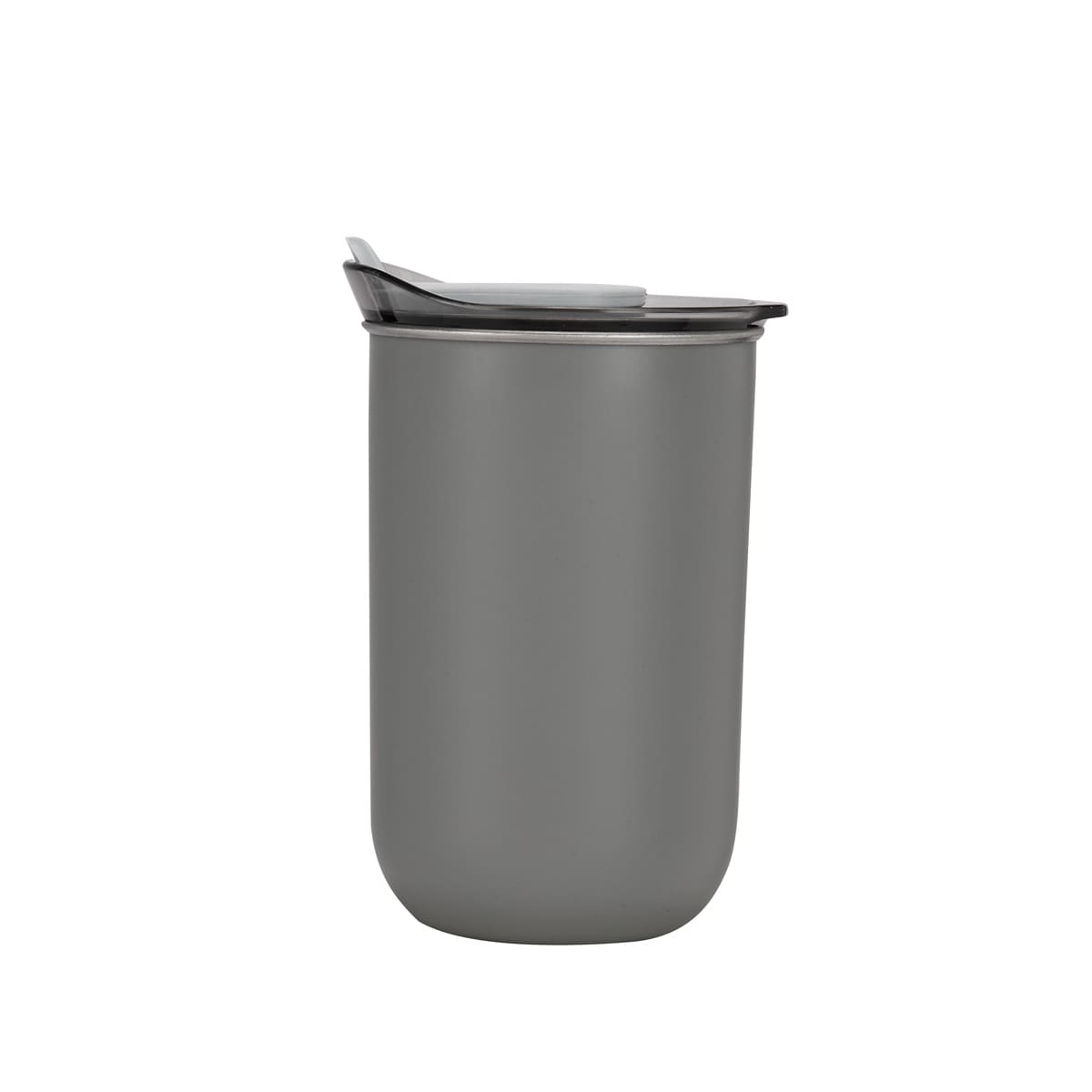 DOBLE PARED. PARED INTERNA DE ACERO INOXIDABLE Y EXTERNA DE PLASTICO. TAPA DE PLASTICO CON SISTEMA PUSH Y SOBRETAPA DE SILICON MOVIBLE. INCLUYE CAJA INDIVIDUAL.