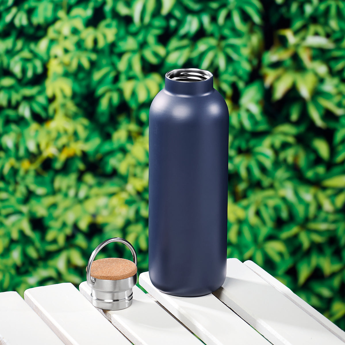DOBLE PARED. CERRADO AL VACIO. PARED INTERNA Y EXTERNA DE ACERO INOXIDABLE. TAPA CON SISTEMA DE ROSCA DE ACERO INOXIDABLE CON CORCHO Y ASA METALICA. MANTIENE TEMPERATURA CALIENTE 6 HRS Y TEMPERATURA FRIA 12 HRS. INCLUYE CAJA INDIVIDUAL.