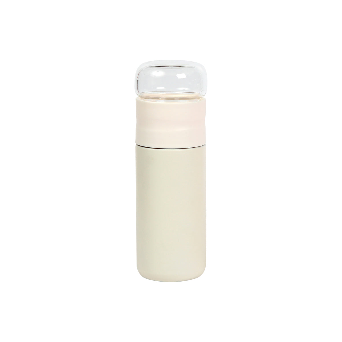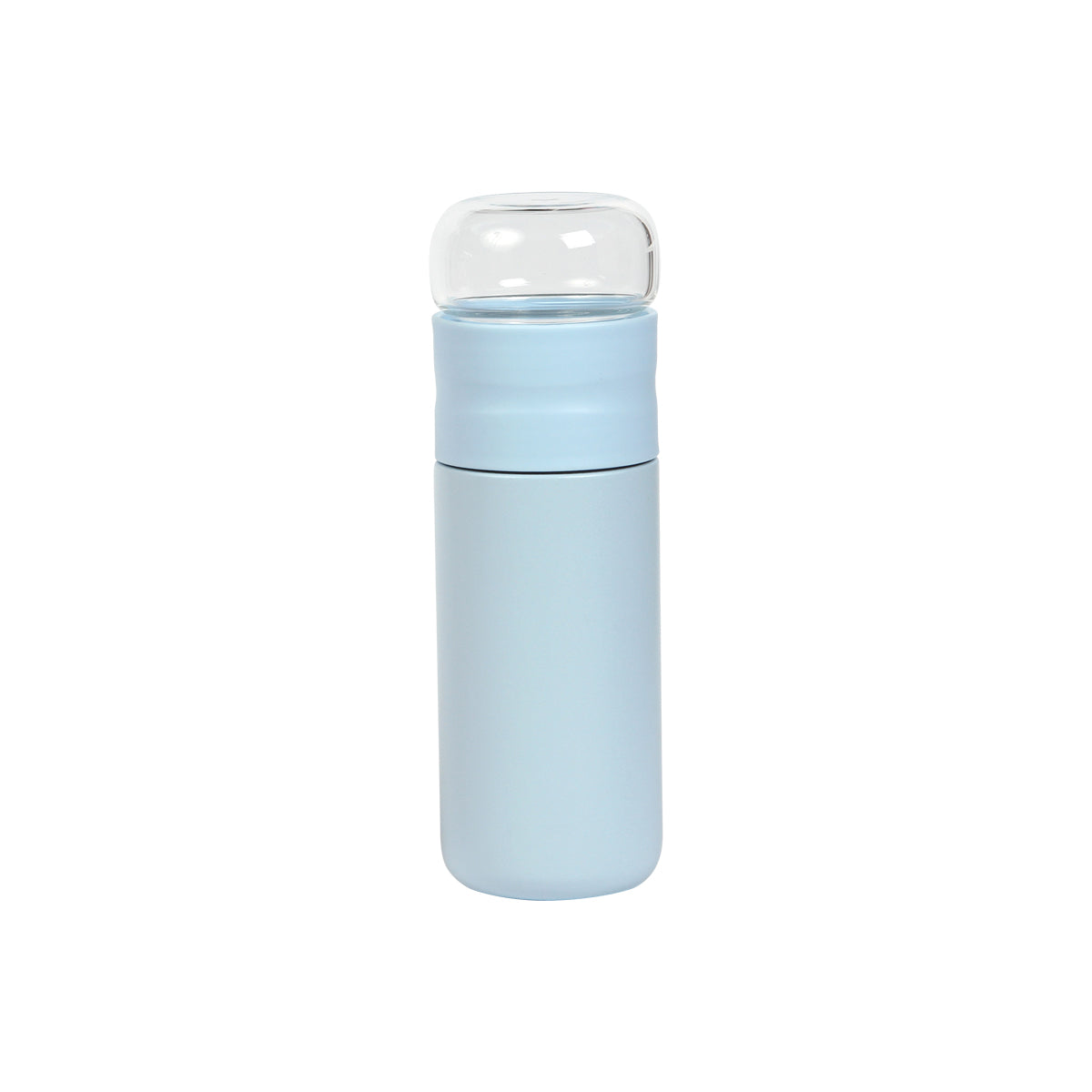 Termo para infusiones de acero inoxidable doble pared, con taza de vidrio de borosilicato y rejilla coladora. Fabricado en materiales de grado alimenticio, mantiene bebidas frías o calientes por un largo tiempo. No usar en microondas. Capacidad de 320 ml. Incluye caja de cartón individual.