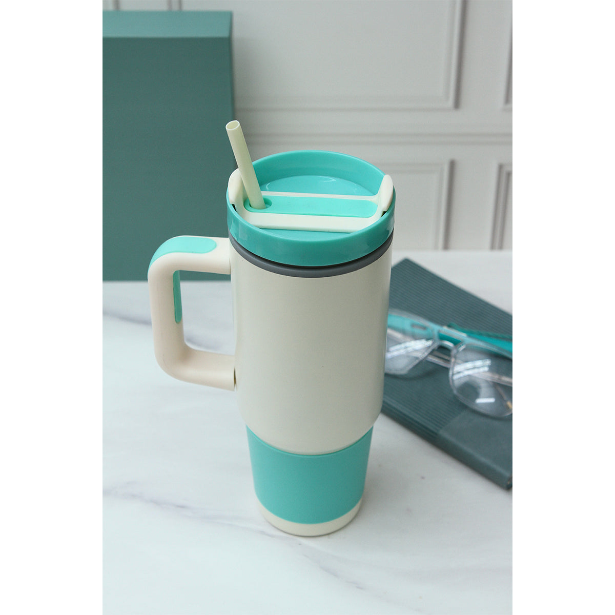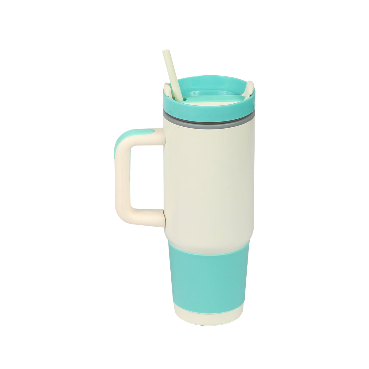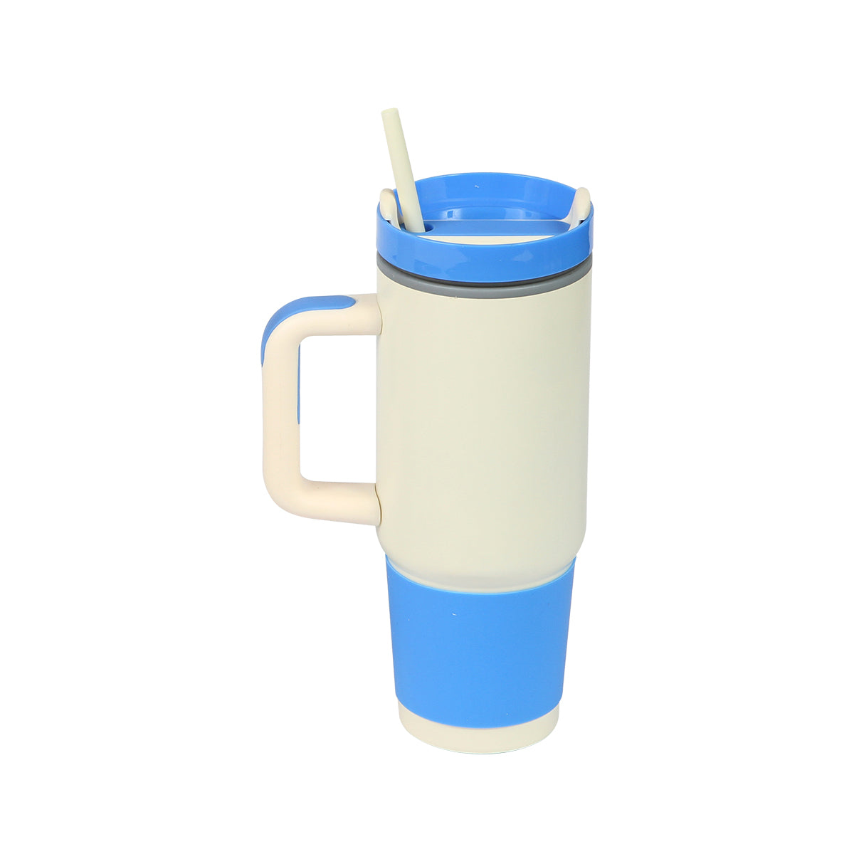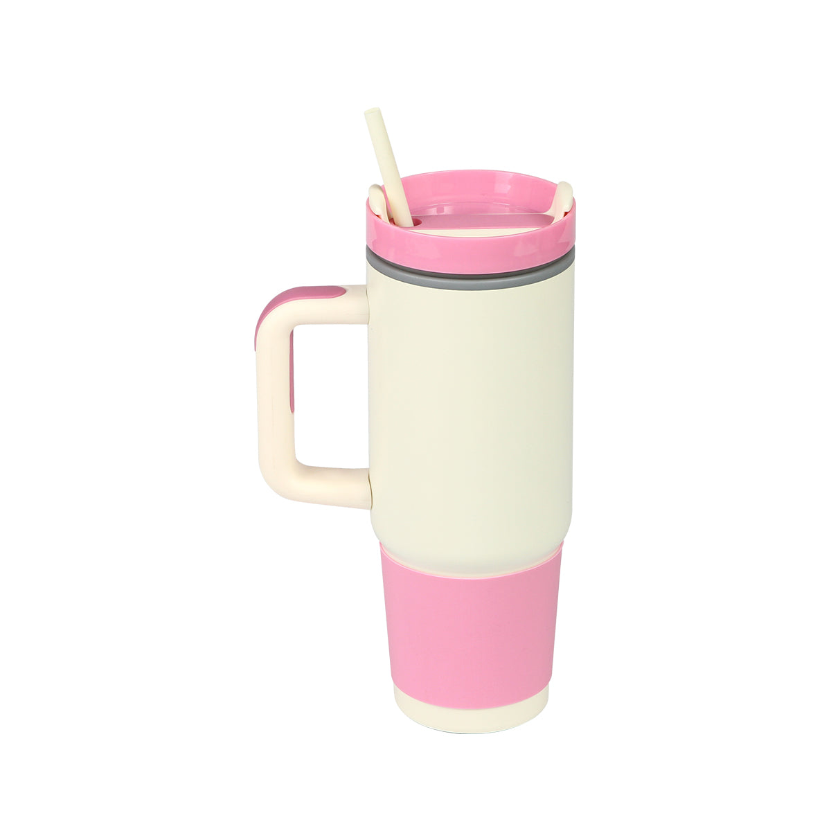 Termo de doble pared fabricado en polipropileno capacidad de 900 ml o 30 onzas. Con detalles en colores pastel, tapa de rosca en color con entrada hermética para popote y compartimento con boquilla, es perfecto para llevar a donde vayas.