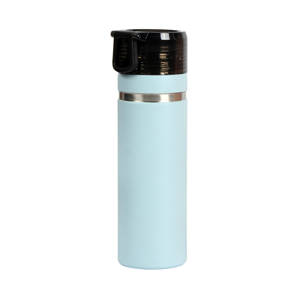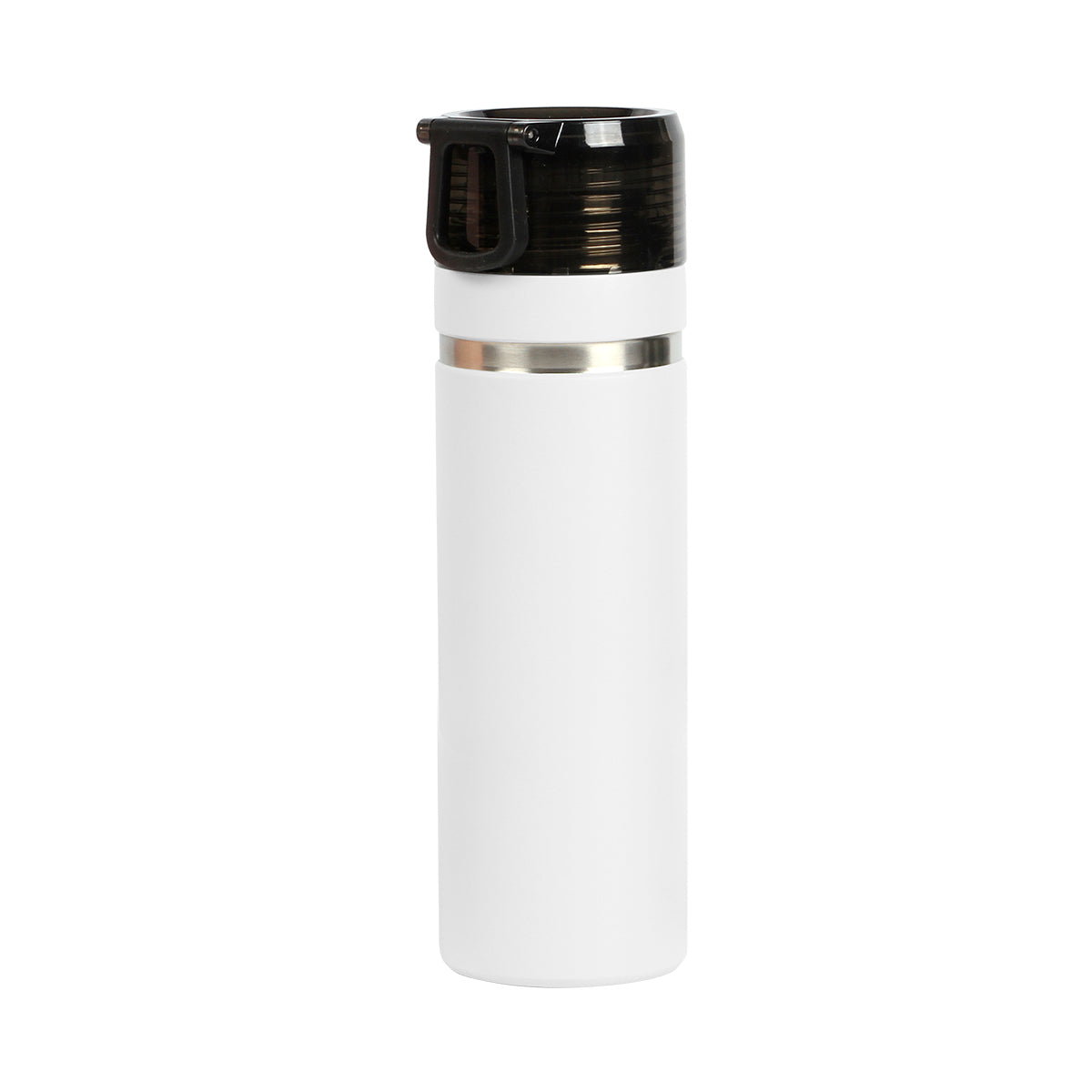 Termo de acero inoxidable doble pared con tapa de plástico y asa . Fabricado en materiales de grado alimenticio, mantiene bebidas frías o calientes por un largo tiempo. No usar en microondas. Capacidad de 700 ml. Incluye caja de cartón individual.